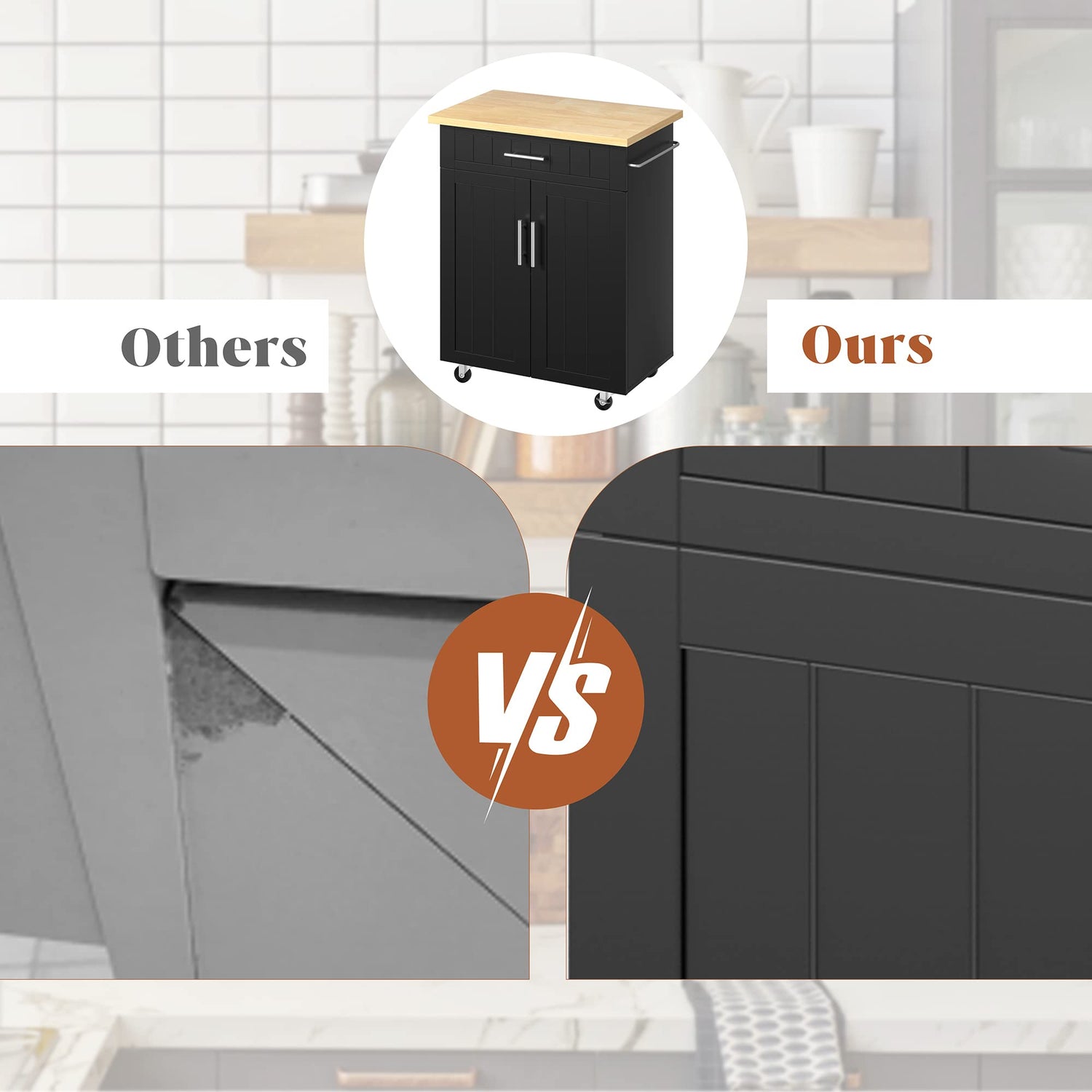 SUNLEI Kitchen Island on Wheels with Storage Cabinet & Drawer, 26" Width Rolling Kitchen Table, Cart Handle for Towel Rack or Free Mobility, Portable Islands for Kitchen, Dining Room(Black)
