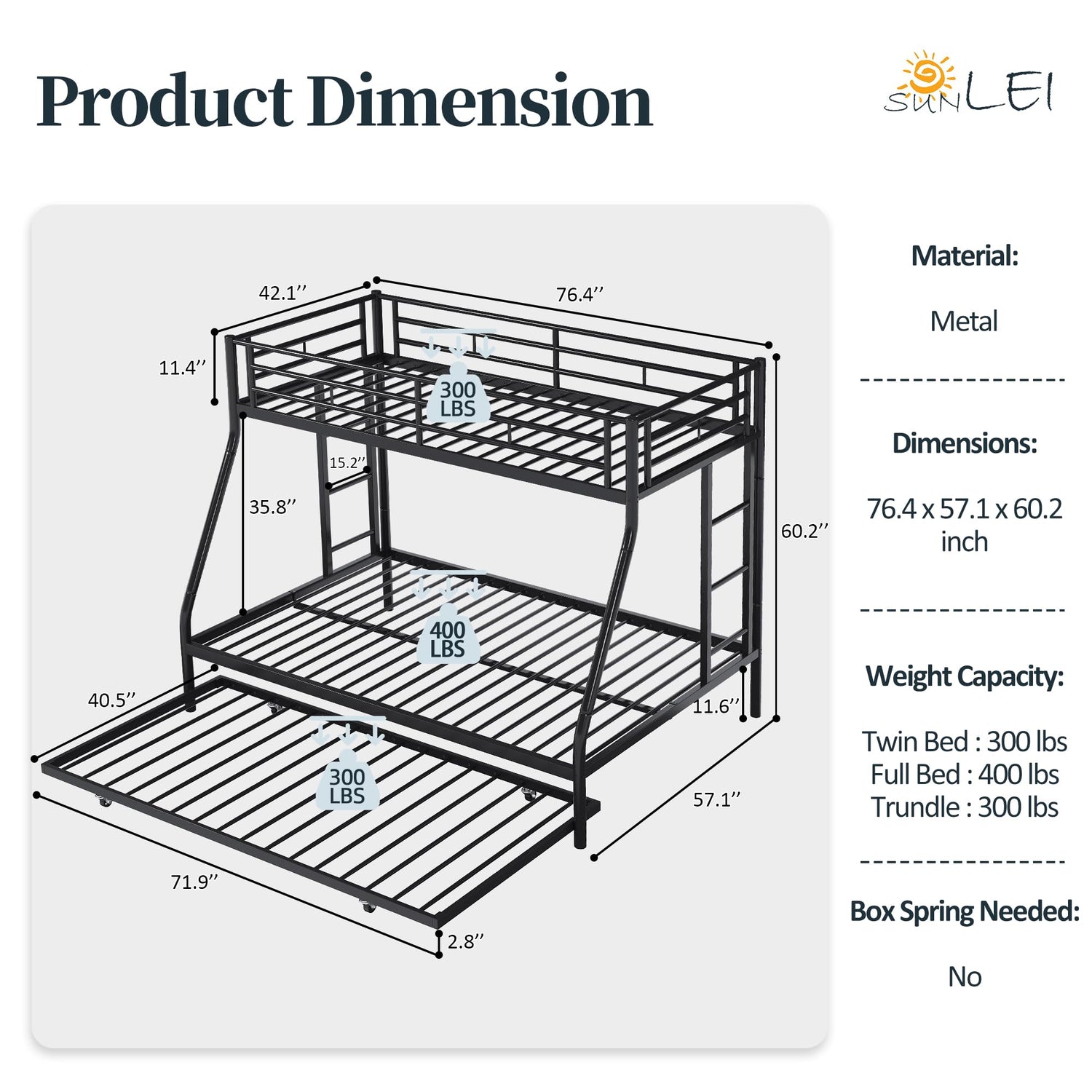 - · 【Trundle Bed Design】Excellent trundle function provides larger capacity of the bunk bed, with high quality you will only be charged a very affordable price.