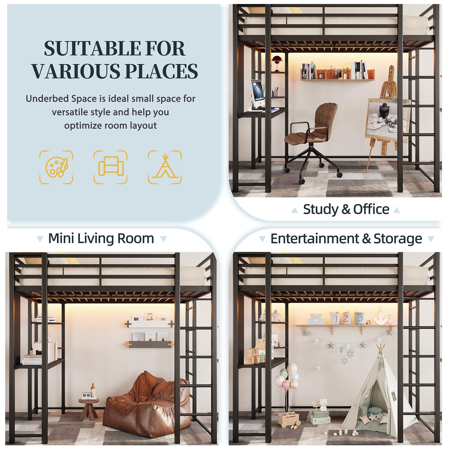 - 【Loft Bed with Desk】While satisfying the rest, the under-bed desk design provides a place or your child to study, work or play for kids, teens, and adults.