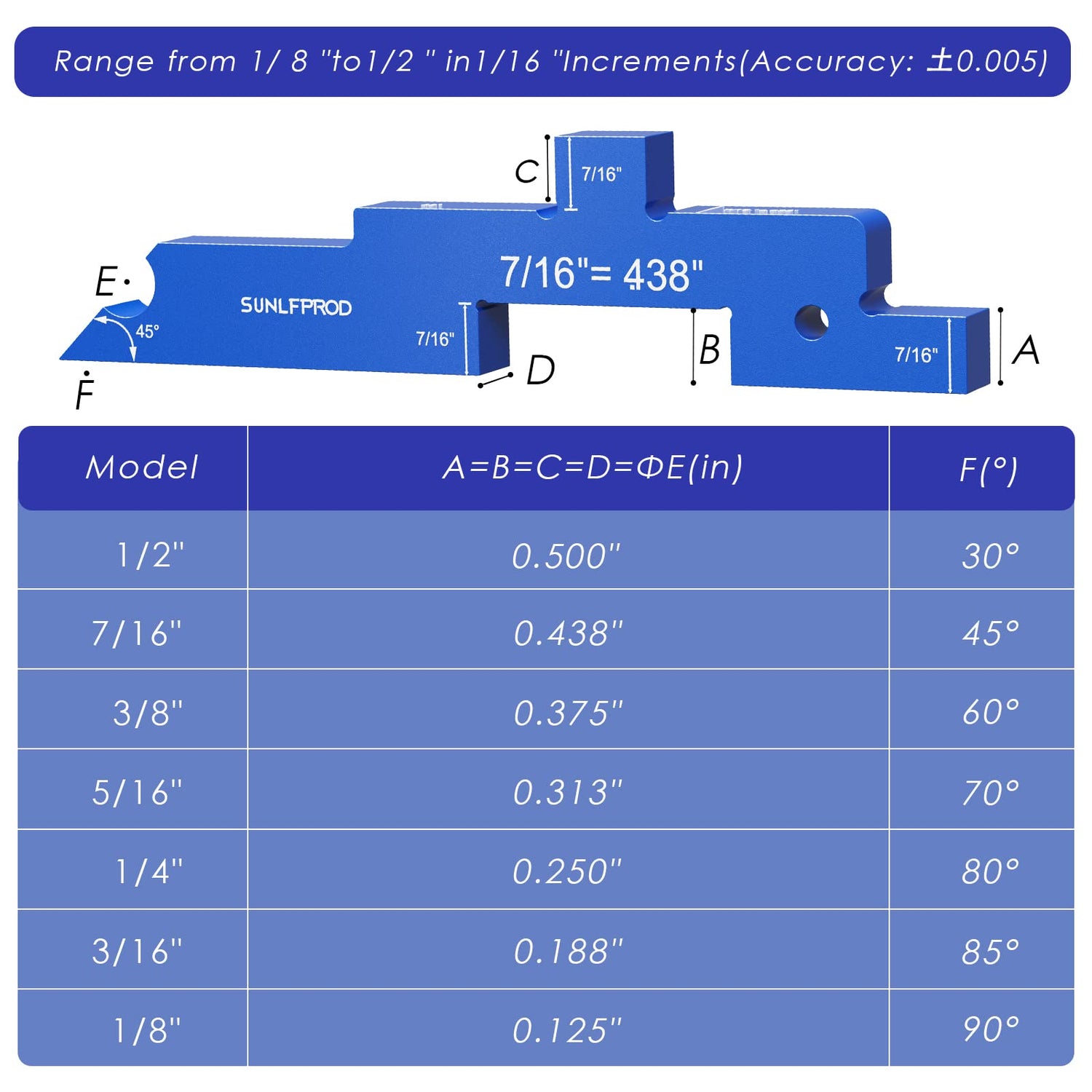 - ✔ [6 in 1 Multiple Functions] SUNLFPROD router setup bars can measure & setup thickness, diameter , depth , height , angle , and length (1/8" spacer block with 1 to 3 inch scale). The innovative design combines the traditional depth and height gauge block to create a late model angle, thickness & height set up block for woodworking, and we will forge ahead on the road of innovation.
