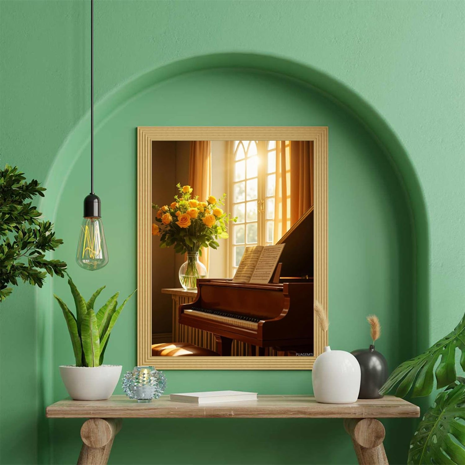 Sunlit Piano Yellow Roses Elegant Diamond Art Kits for Adults, 5D DIY Full Drill Diamond Painting Kits for Adults Beginners, Diamond Painting Kit for Wall Home Decor (No Frame) 12x16 Inch