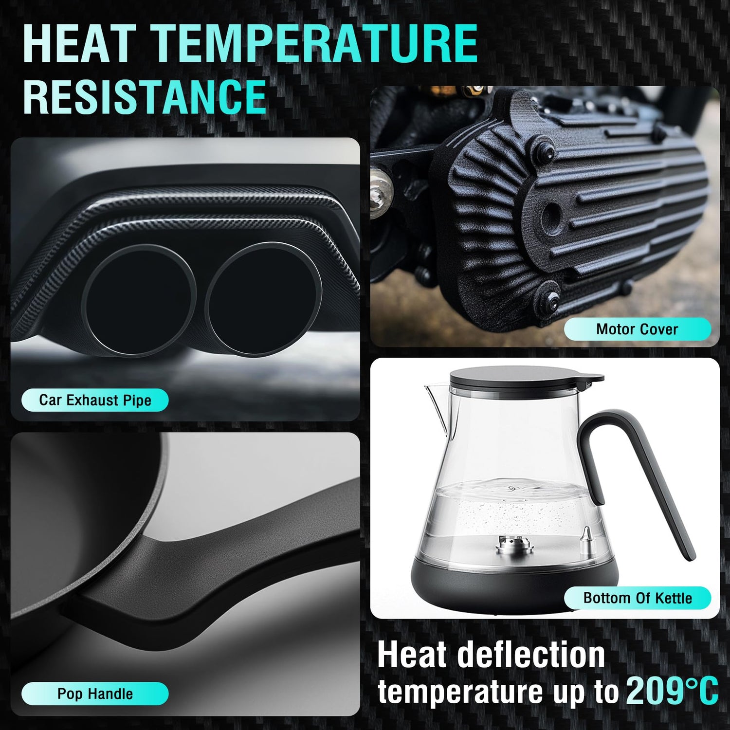 - 【Heat-Resistant】-The heat distortion temperature is up to 209°C, much higher than Easy PA, PC, ASA and other 3D printing filaments. It can be applied to parts that need to withstand high temperatures, such as automobile exhaust pipes, motor covers, pot handles, the bottom of the kettle, etc.