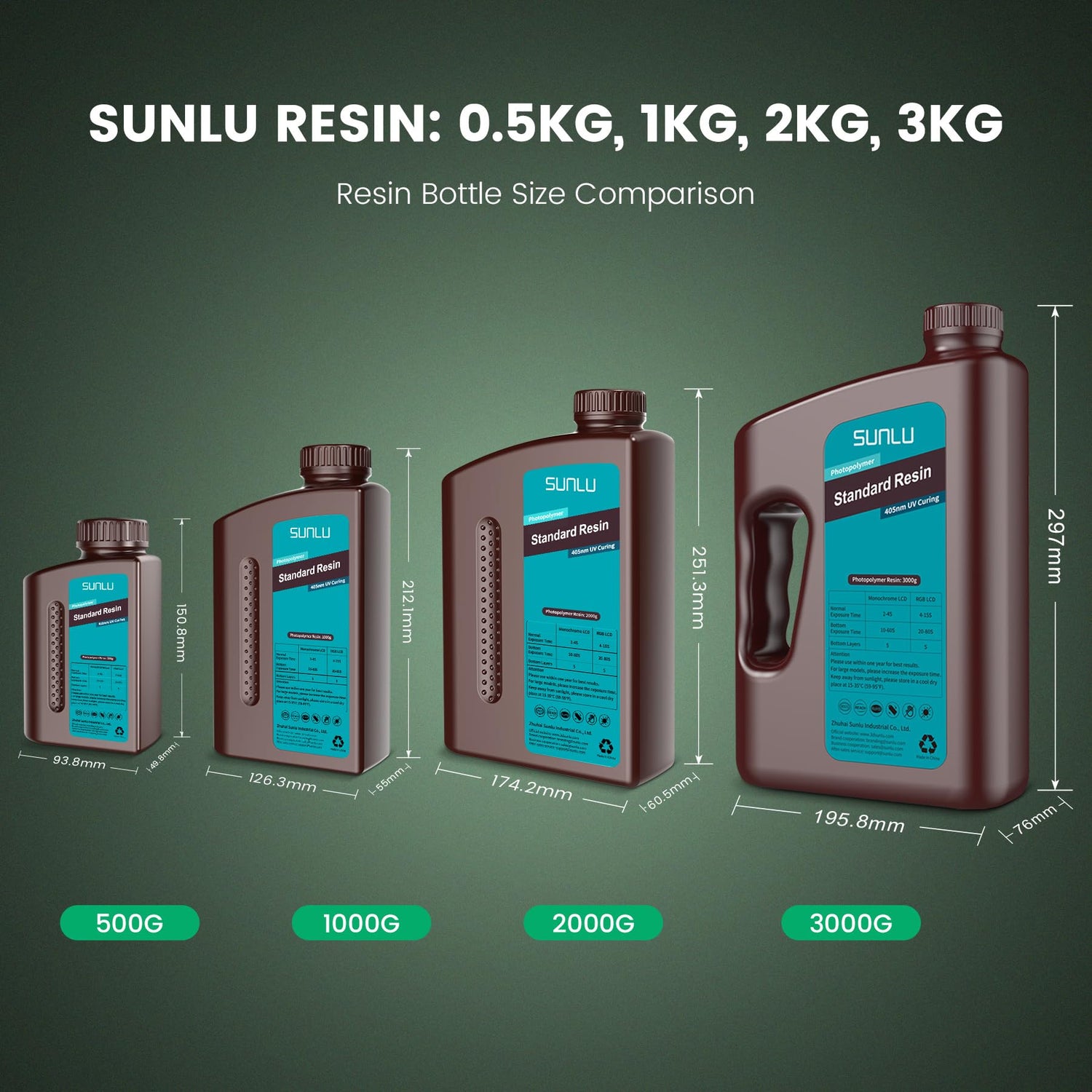 - ⑧【High Compatibility】- SUNLU Standard resin printing wavelength is 365-405nm, which is compatible with 99% of printers on the market, including LCD, DLP and SLA.