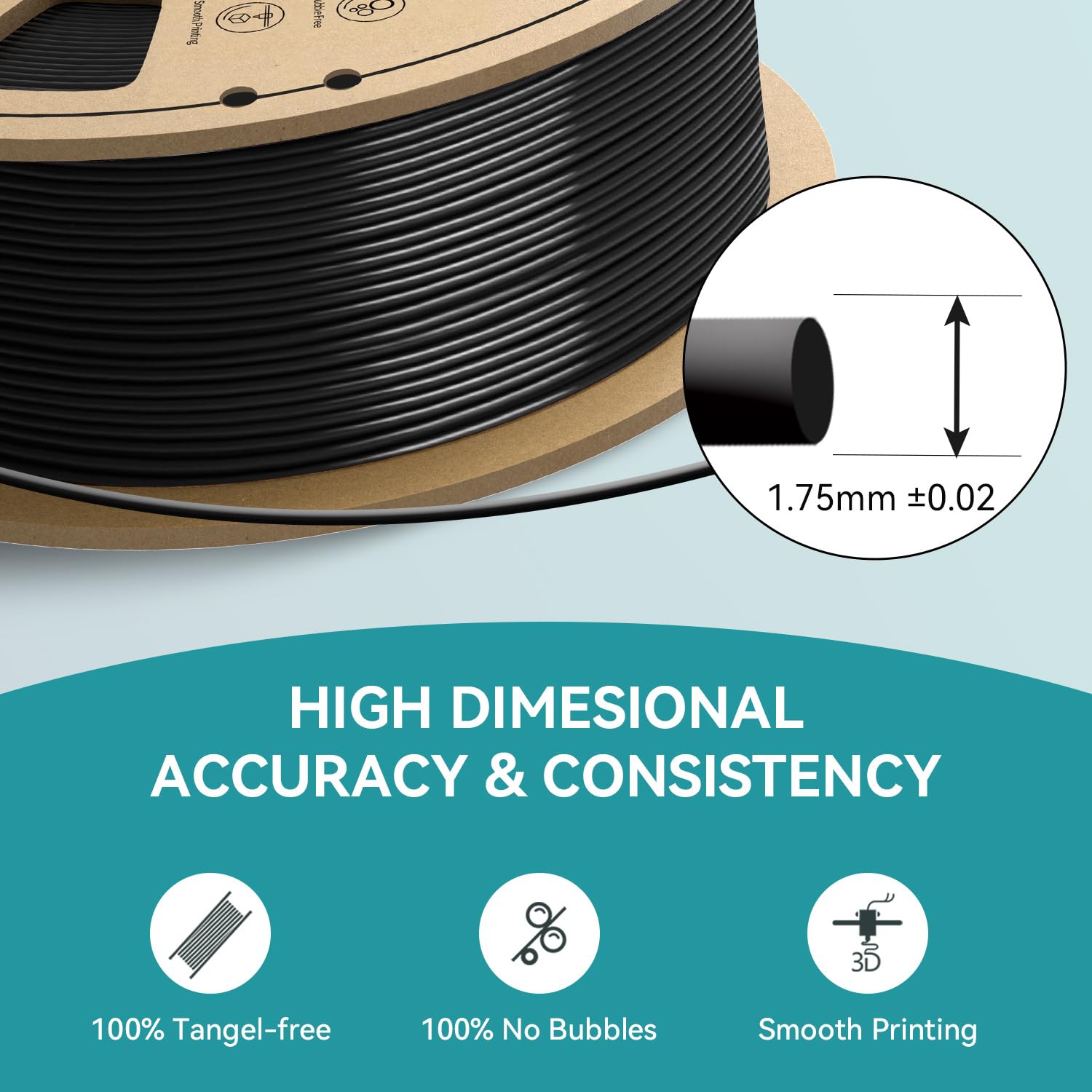- ✅【High-Quality PETG Filament 1.75mm】It has the advantages of both PLA and ABS filaments. Eco-friendly, odorless, and non-toxic. No cracking and warping. With good toughness, the printed model is firm and sturdy. The filament can bend repeatedly with high elongation at break.