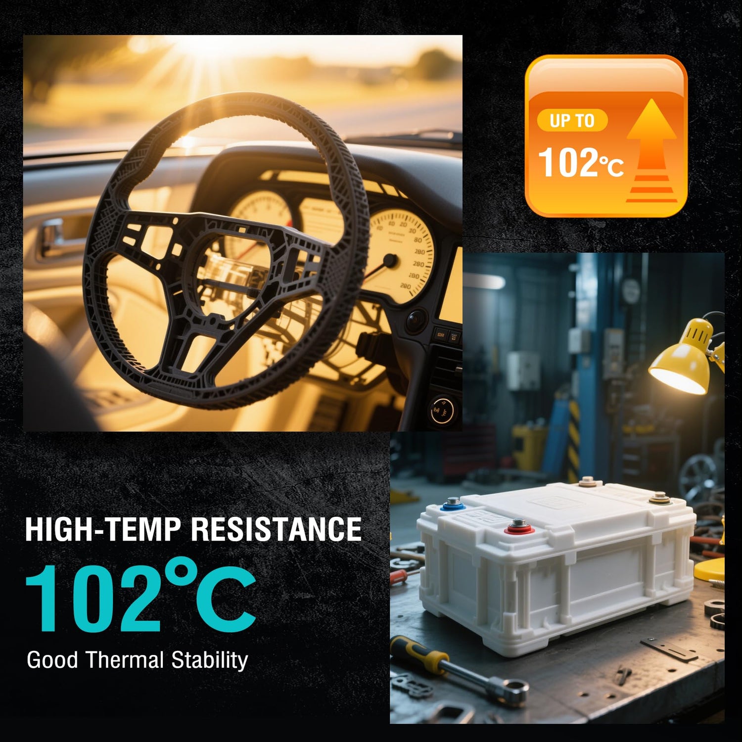 - ⑤【Good Thermal Stability】- Handles 215.6℉(102°C) temperature without warping, PC-ABS filament perfect for car engine parts, electronics near heaters, or outdoor gear in summer. Remains rock solid during high temperature cycles and resists cracking unlike PLA.