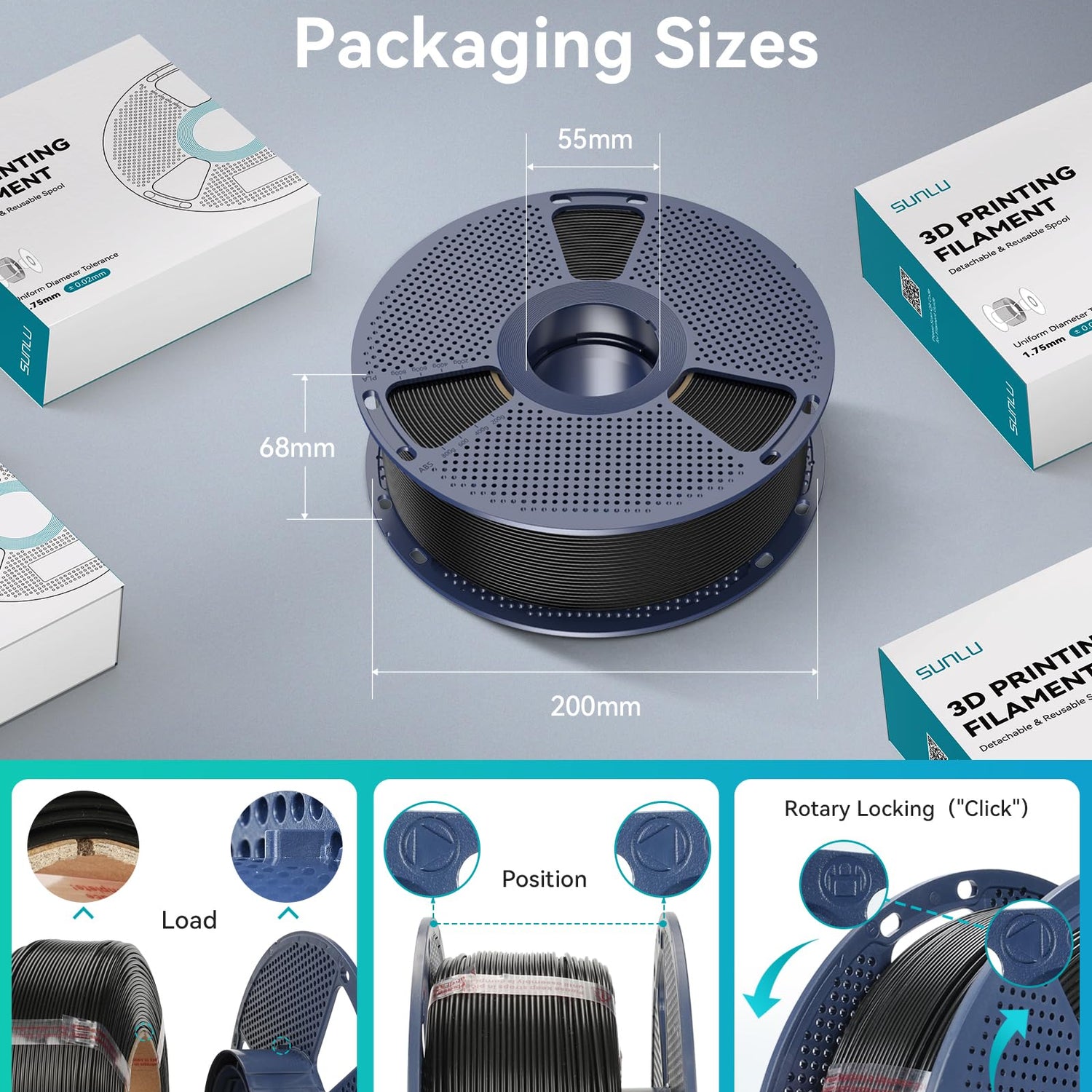 - ⑨【Vacuum Packaging】SUNLU 3D Printer Filaments are sealed in airtight vacuum packaging which ensures that they remain moisture-free and preserve their quality from the factory to your 3D printer.