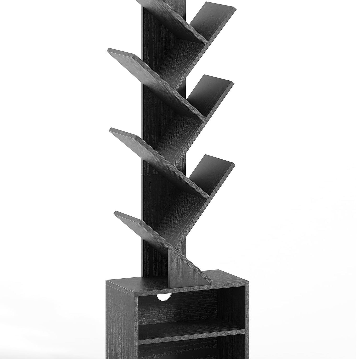 SUNMORY Black 6-Tier Tree Bookshelf with Storage Cabinet - Modern Narrow Floor Organizer for Home and Office