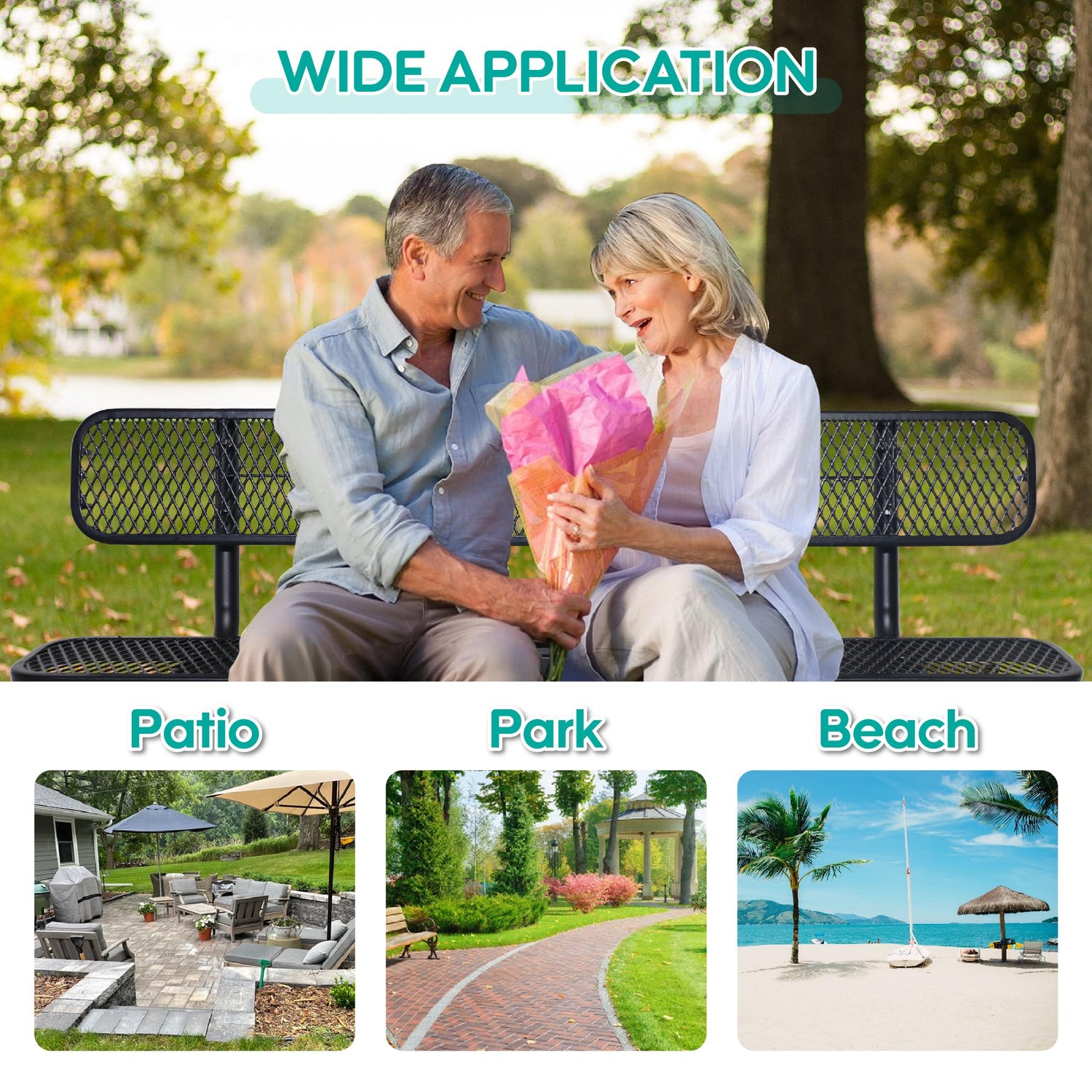 Sunnibety 6 Feet Heavy Duty Metal Park Bench for Outside, Outdoor Bench with Backrest & Portable Frame, Commercial Benches for Shopping Malls, Stores, Parks, Patios, Decks, Black