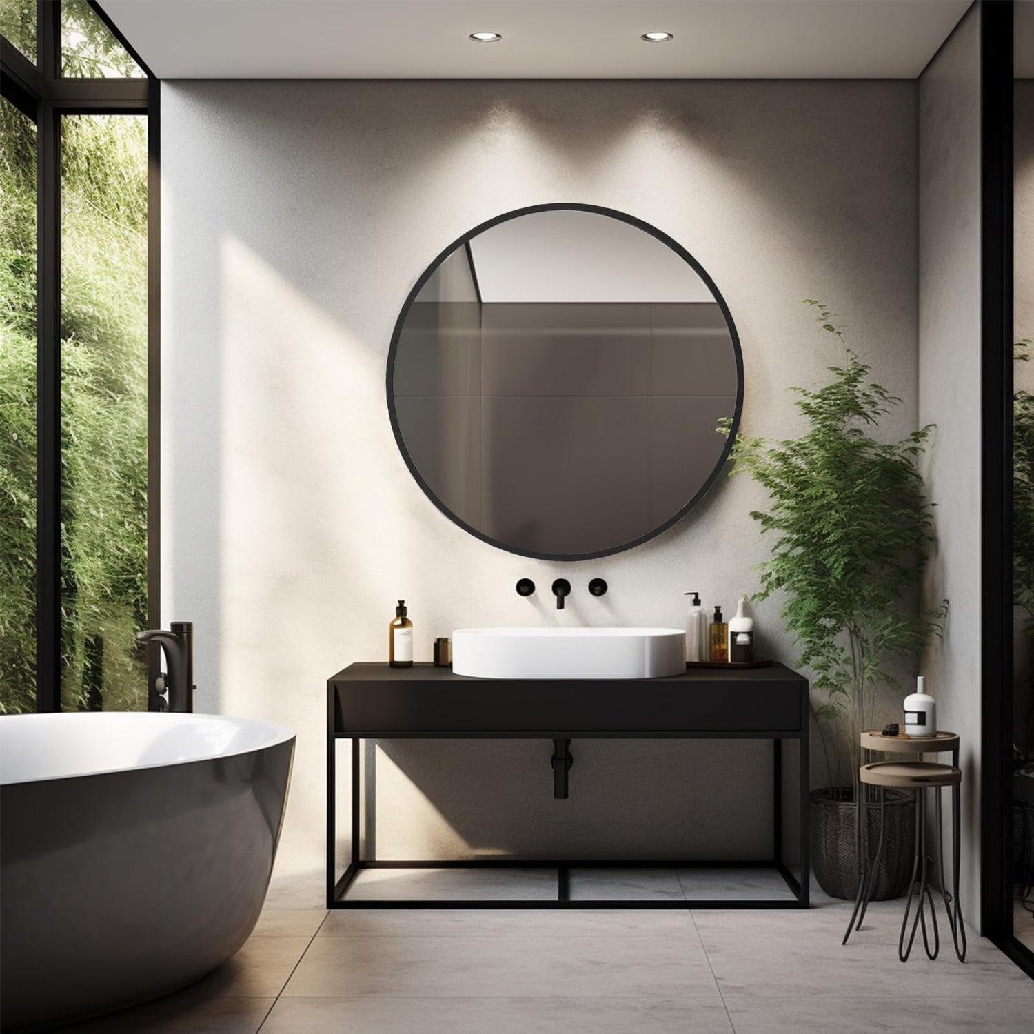 - Black Round Mirror Metal Frame: Brushed aluminum alloy frame is adopted, which is durable, waterproof, anti rust, no light leak out.