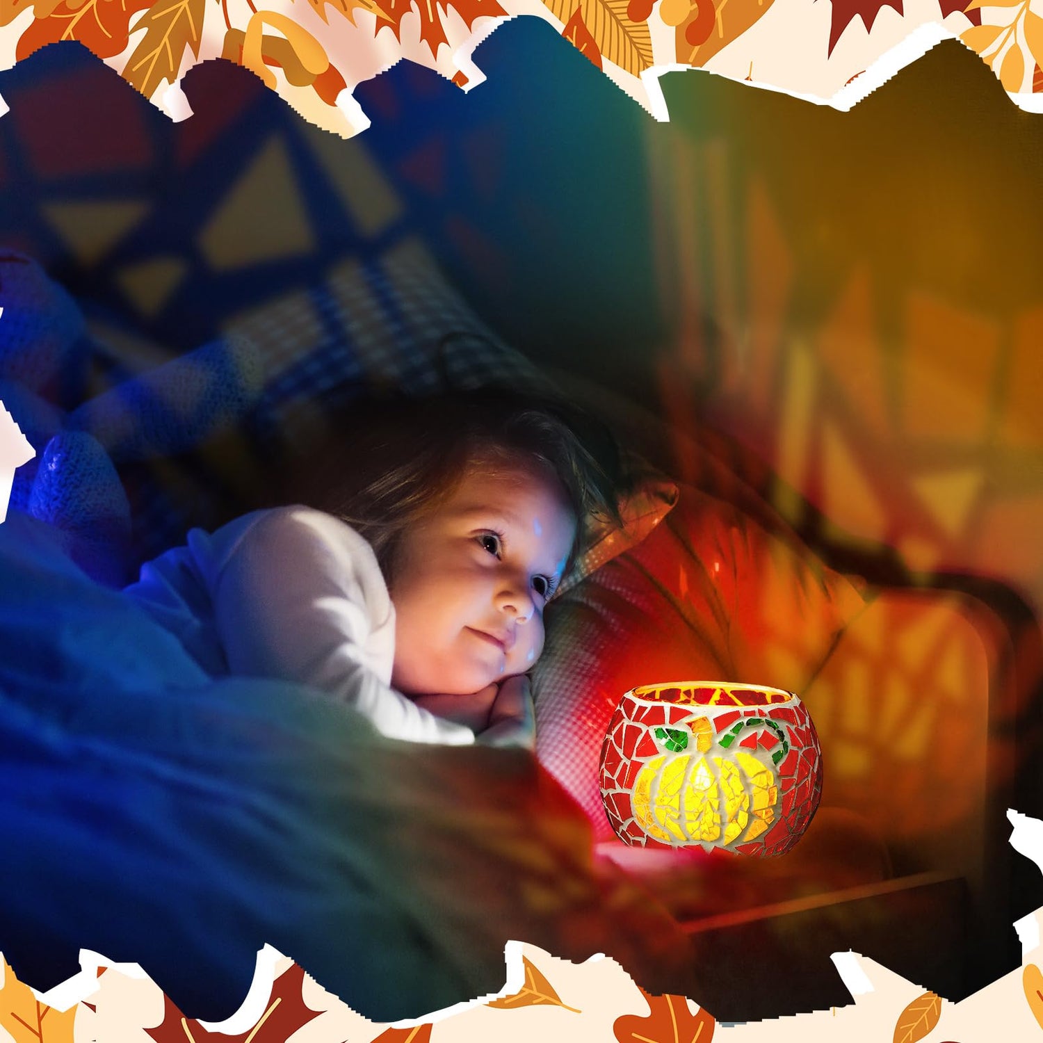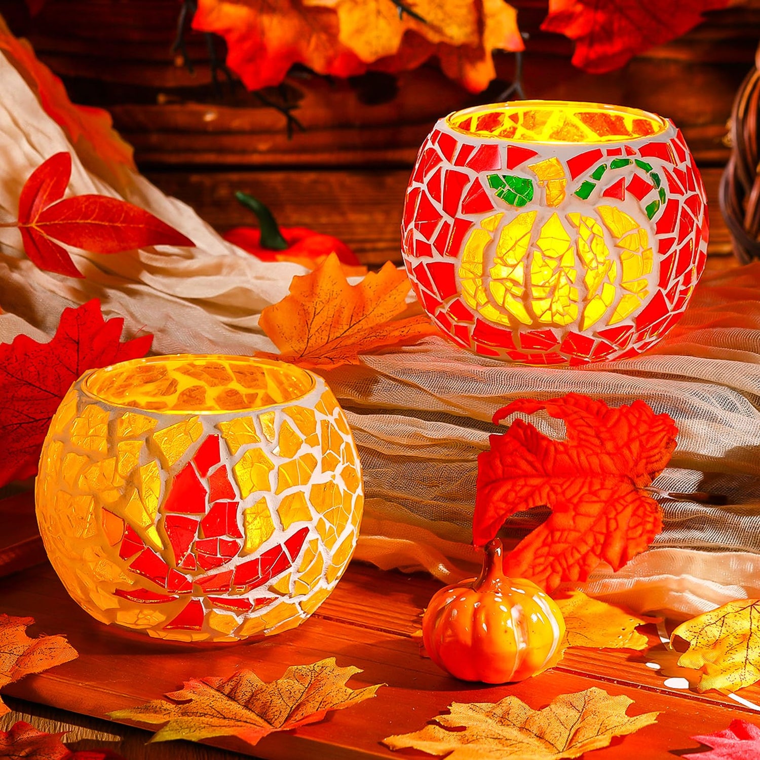 Sunnychicc 2 Set Glass Mosaic Candle Holder Kit Include Tea Light Holder, Glass Mosaic Tiles DIY Crafts Creativity Handmade Artwork for Adults Home Lighting Decor(Autumn Theme)