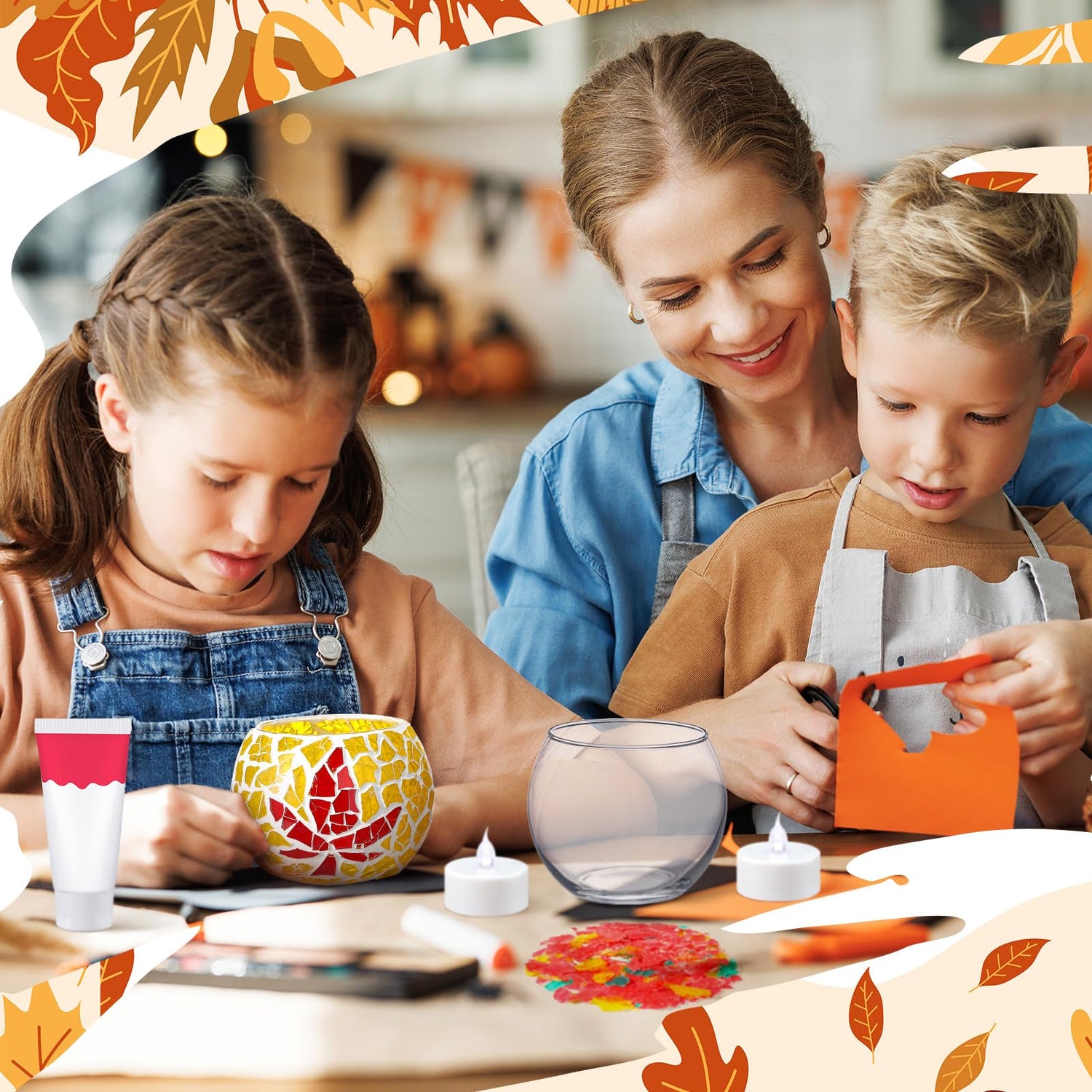 - Quality Material and Aesthetic Appeal: the jar in the mosaic craft kit is crafted from pristine transparent glass, ensuring durability and a luminous display; The autumn candle holders promote a shiny appearance, reflecting light in a sophisticated manner; Whether placed against daybreak or dusk, this sturdy creation is sure to add a unique shine to your dwellings; A glass finish also paves the way for easy care and maintenance