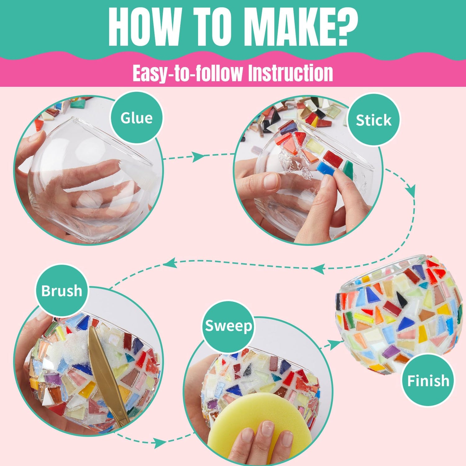 - Artistic Pastime and Skill Enhancement: with our DIY glass mosaic kits for adults, not only will you enjoy a productive pastime, but you'll also harness your artistic talents; It's good for both youth and adults, providing a creative outlet and an opportunity to learn a craft, or good an old one; Plus, it's fun for diverse skill levels