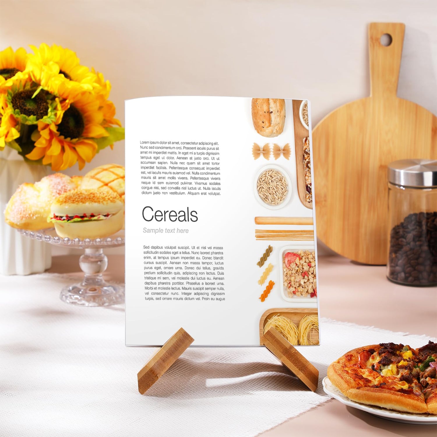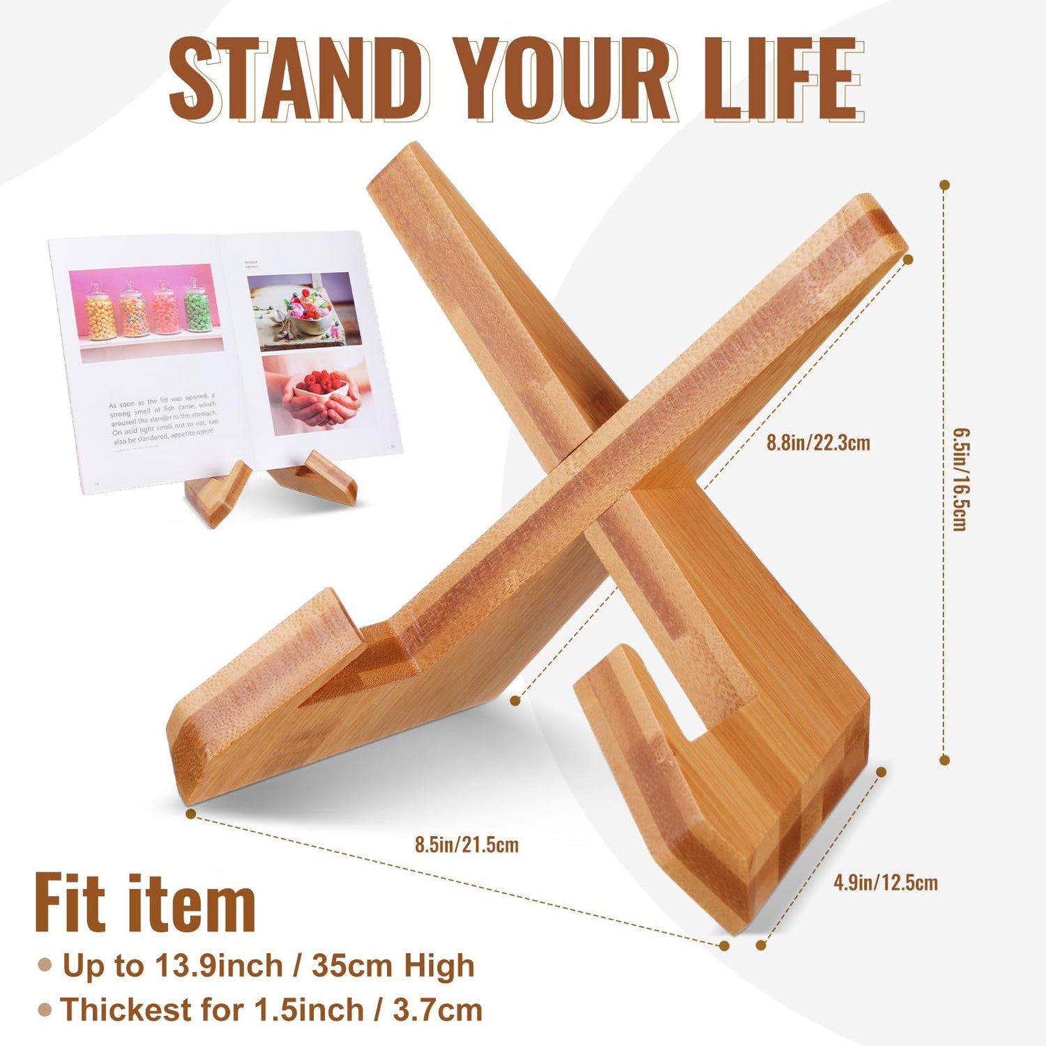 - Properly Sized and Organized for Convenience: this bamboo cookbook stand, releasing both of your hands while cooking, is crafted to ideally fit hardcover cookbooks measuring between approx. 8.3 X 11.7 inches to 9 x 12.8 inches; However, it cannot accommodate items larger than 10 x 13.9 inches; The thoughtful design sports an extended base length that allows for convenient angle adjustments for the ideal reading view without disrupting page turns