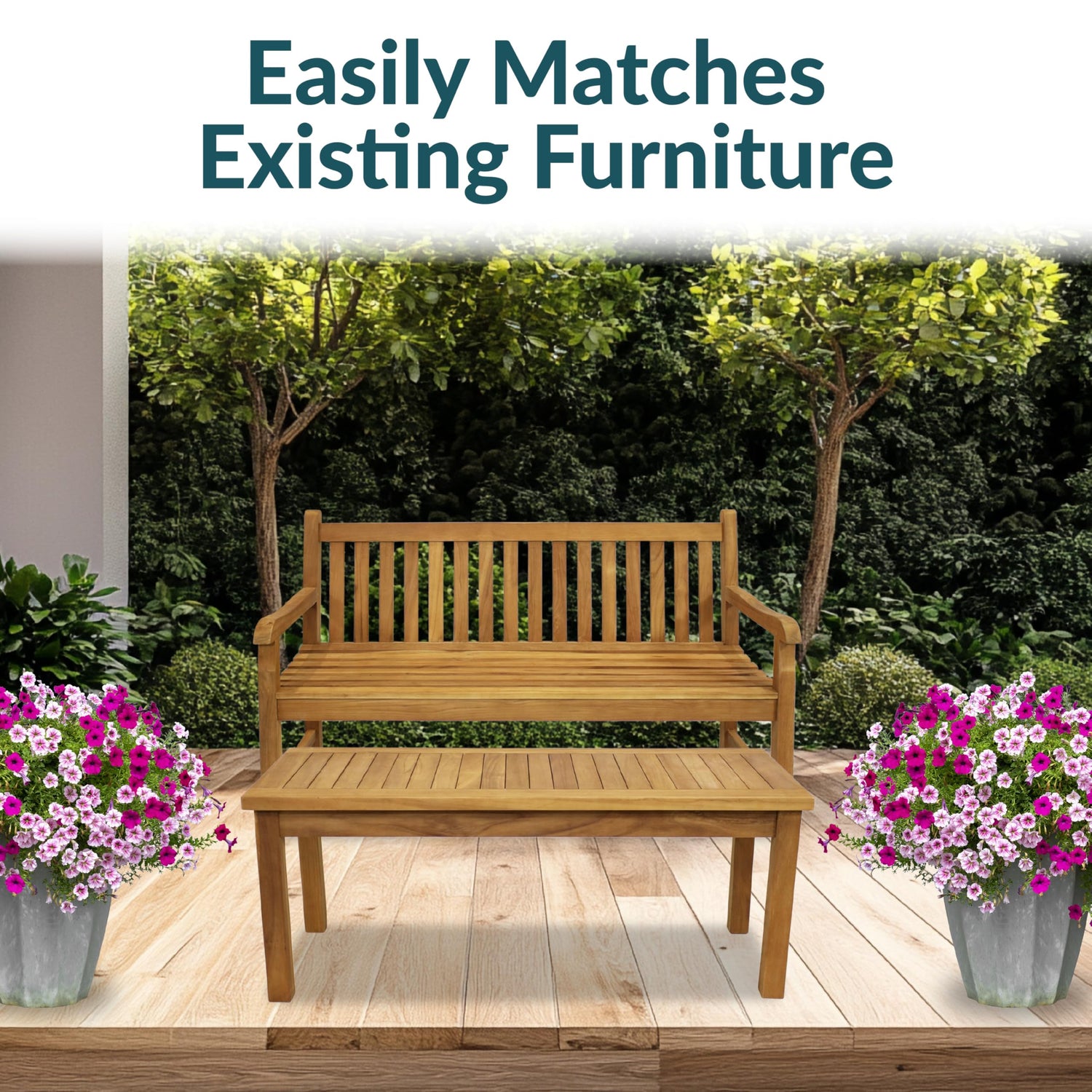 Sunnydaze 45-Inch Solid Teak Rectangular Outdoor Coffee Table - Patio Coffee Table for Outside - Light Brown Wood Stain Finish
