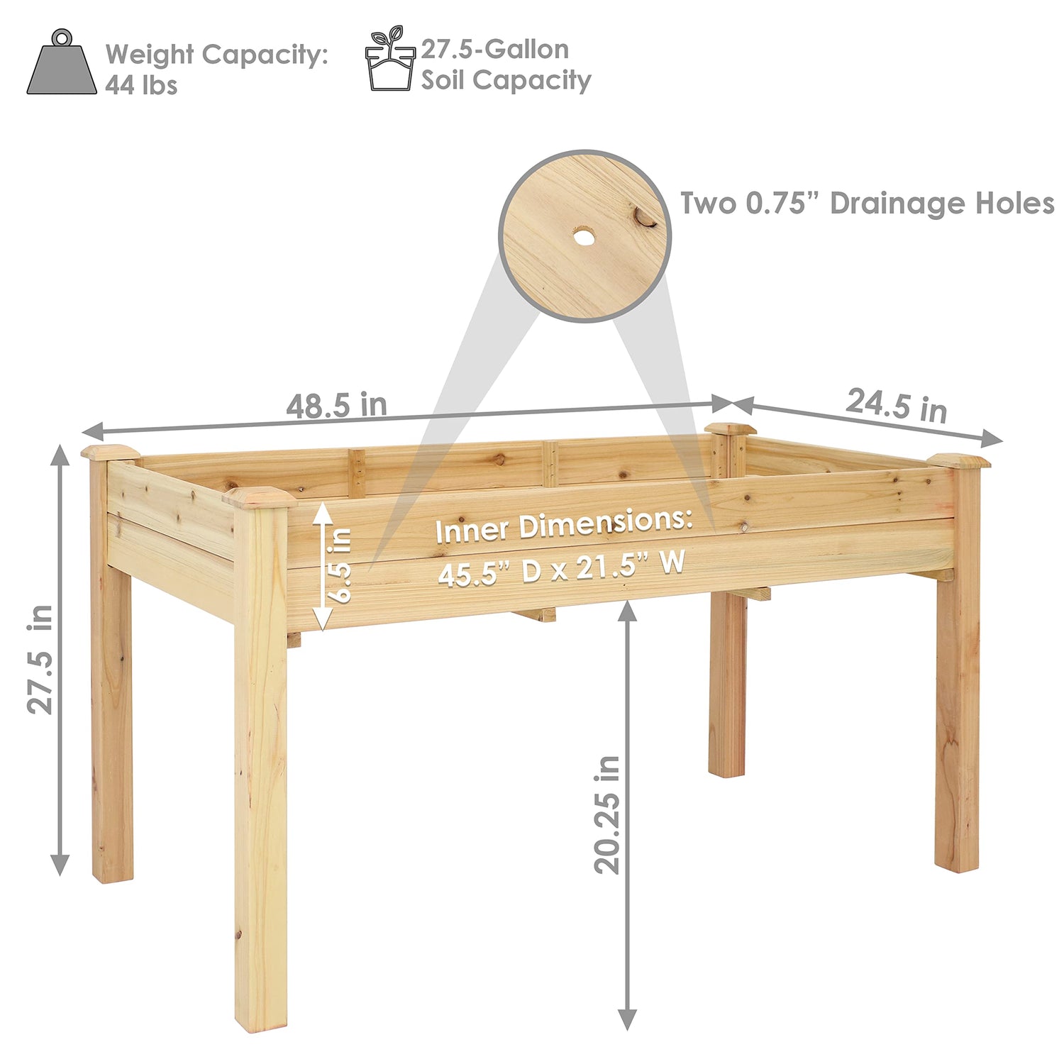 Sunnydaze 48.5-Inch Wood Raised Garden Bed - Outdoor Rectangular Elevated Planter Box with 2 Drainage Holes
