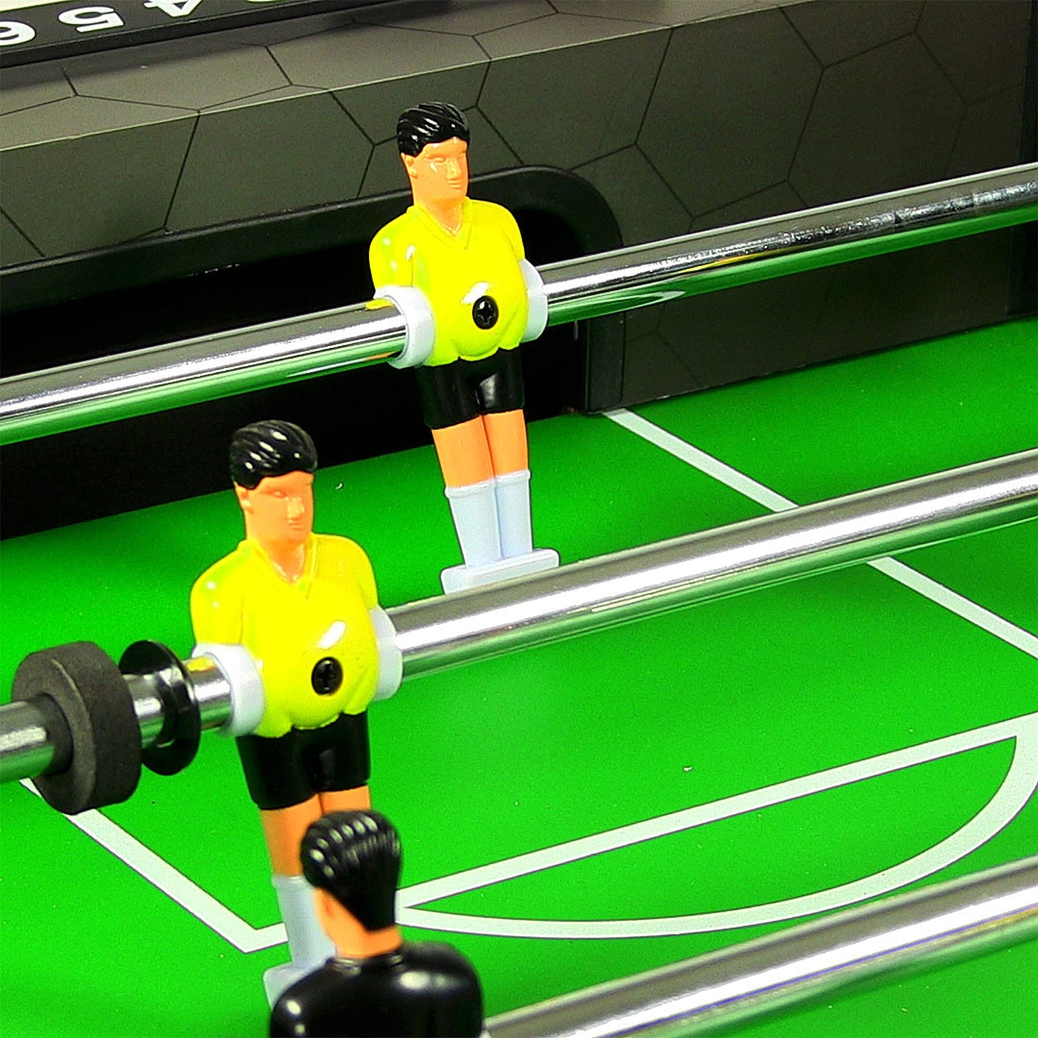 - Lots of fun: This foosball table features cool soccer graphics, easy-to-grip handles and detailed painting on the players. Easily keep score with the manual scorer located on each side.