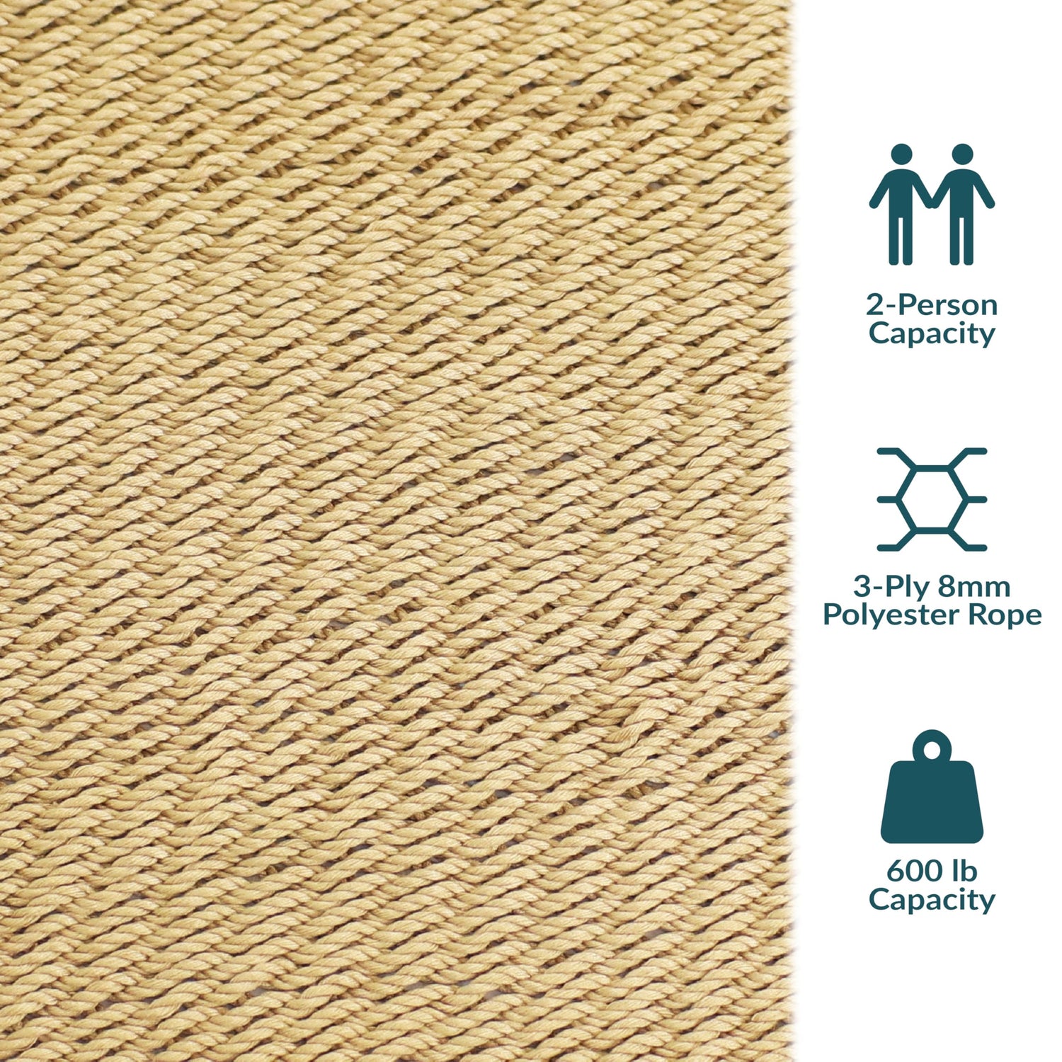 Sunnydaze Soft-Spun Polyester Rope Double Hammock for Outside - 600-Pound Weight Capacity Extra Large Hammock - Tan