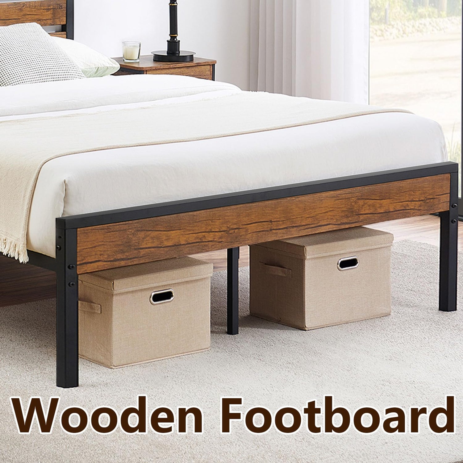 - Stylish Modern Design: Enhance your bedroom's aesthetic with this Rustic Brown Wood Farmhouse full-size platform bed. Featuring a headboard and footboard crafted with high-quality wrought iron slats, this bed frame combines a classic yet modern look, adding a chic touch to your space.