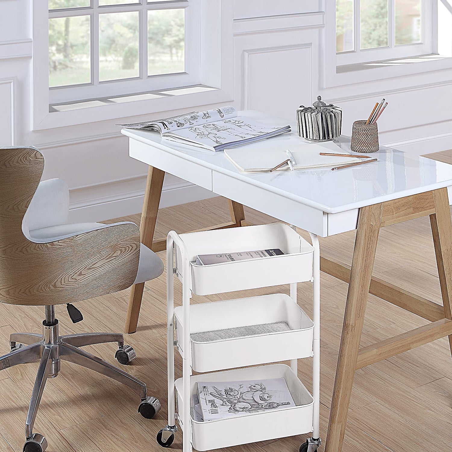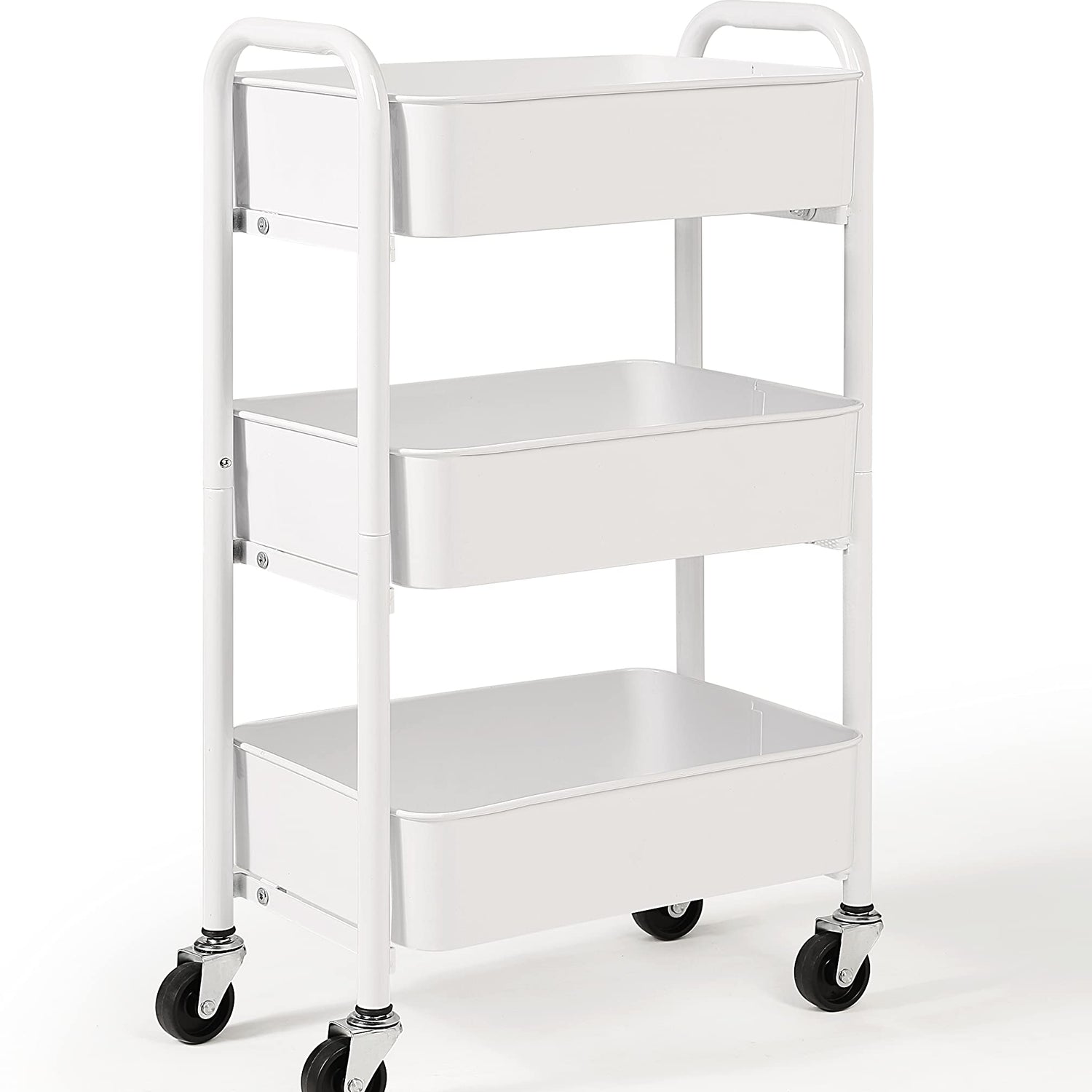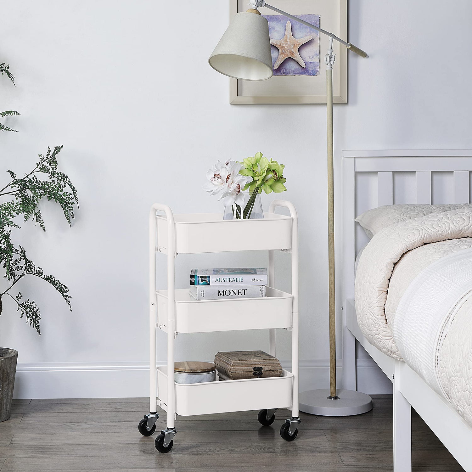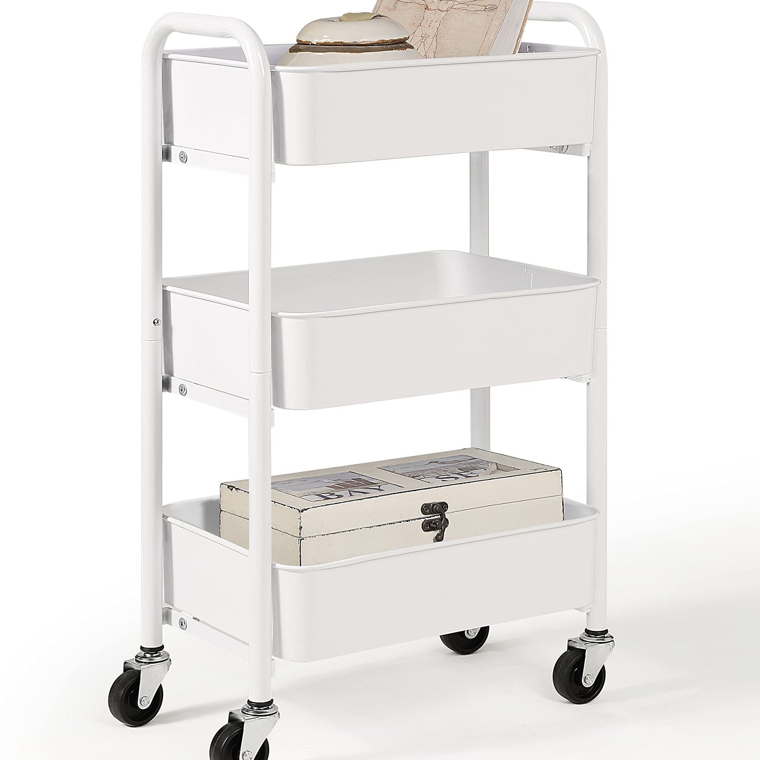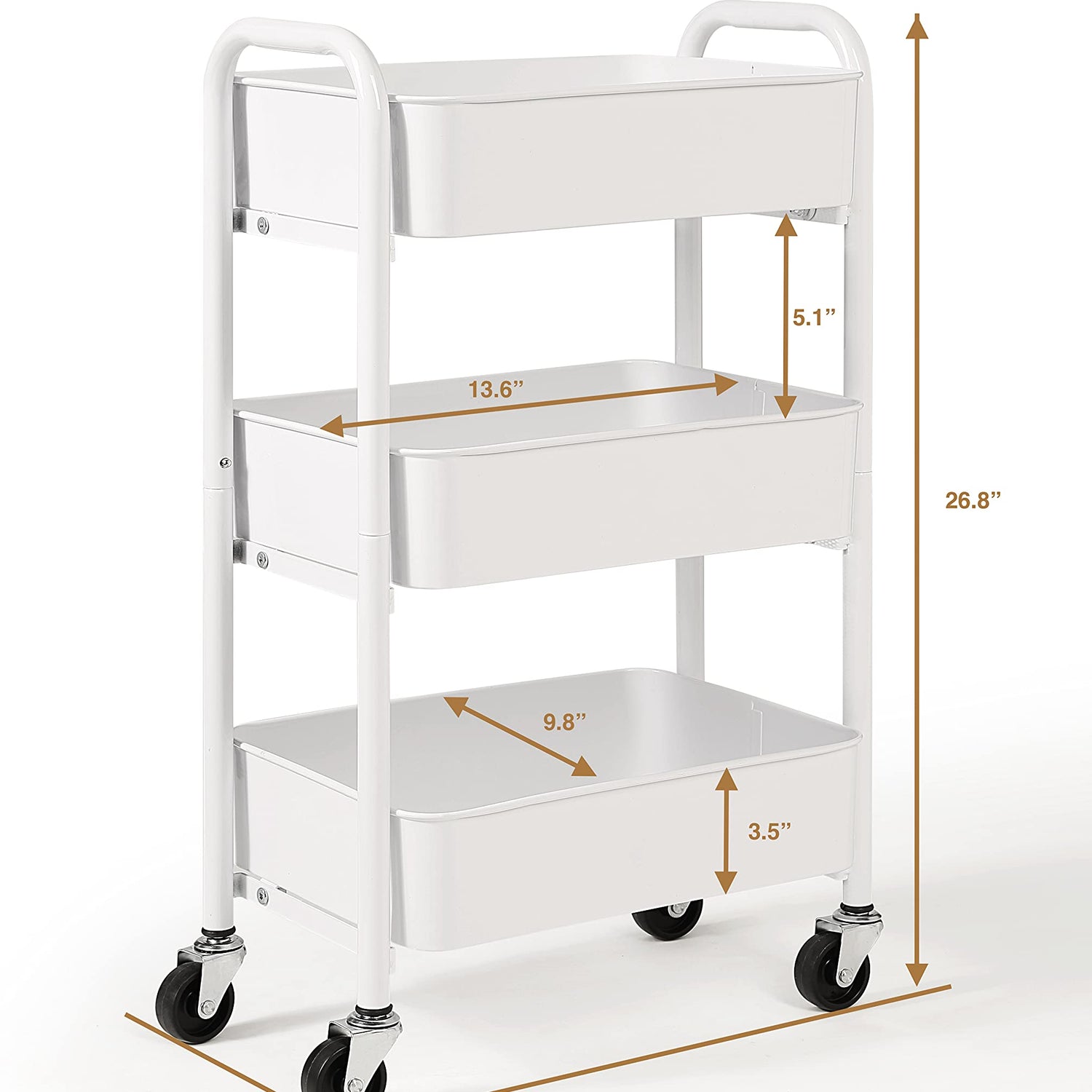 SunnyPoint 3-Tier Delicate Compact Rolling Metal Storage Organizer - Mobile Utility Cart Kitchen/Under Desk Cart with Caster Wheels (WHT, Compact (15.5" X 26.8" X 10.27"))