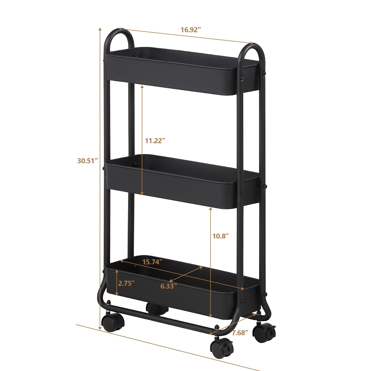 SunnyPoint Slim Rolling Storage Cart, 3 Tier Bathroom Storage Organizer Bathroom, Laundry Utility Cart (Black)
