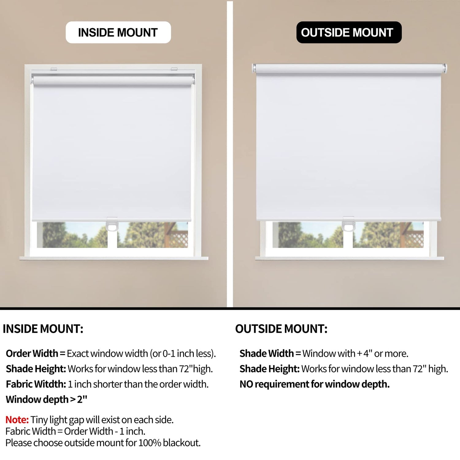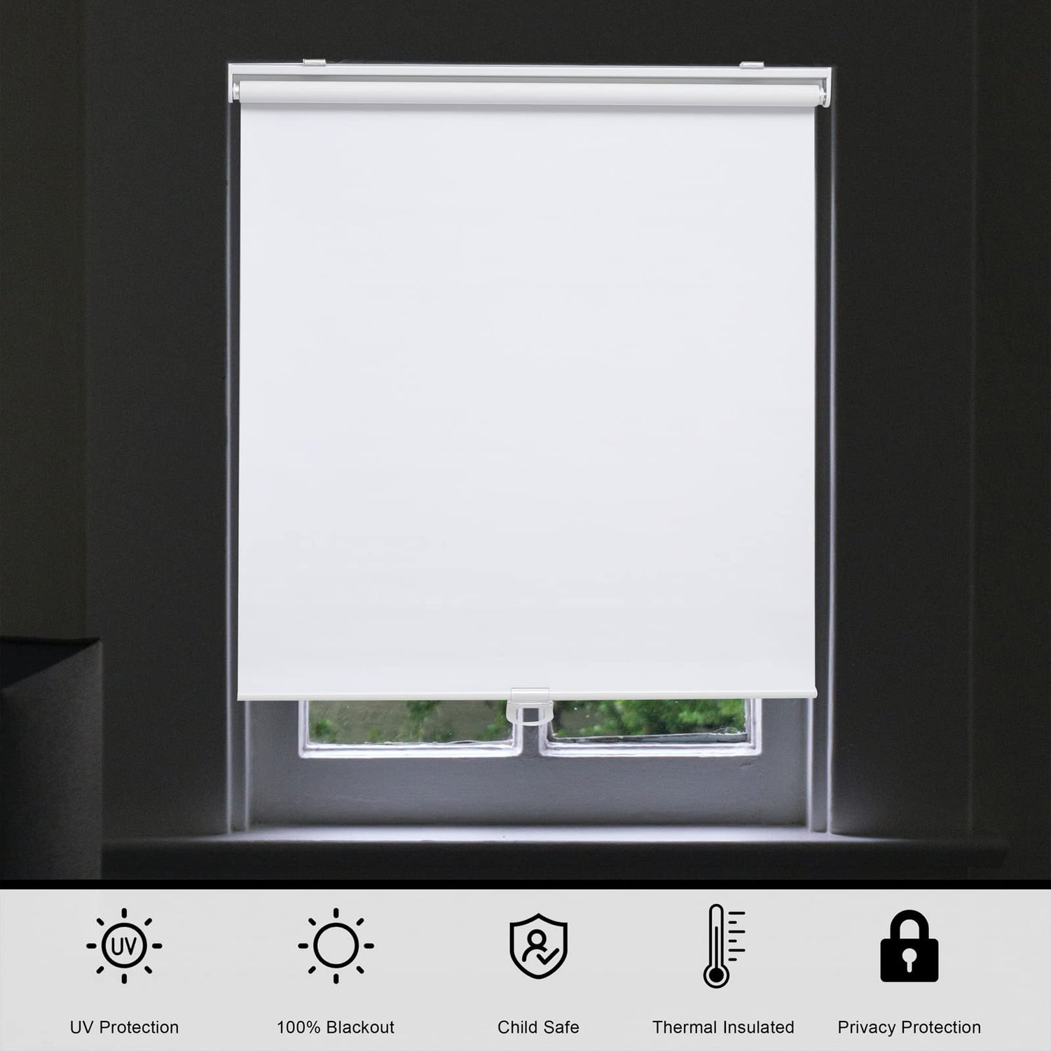 - 【100% Blackout】Our window roller shades are made of 100% polyester fabric with full blackout coating. It can effectively block sunlight and UV rays. Protect your privacy and reduce noise. In summer, it blocks sunlight and heat source to make the room cooler. In winter, it can save indoor heat source and make the room warmer. Roller blinds are suitable for homes, bathrooms, kitchens, bedrooms, offices, and also perfect for French doors and windows.