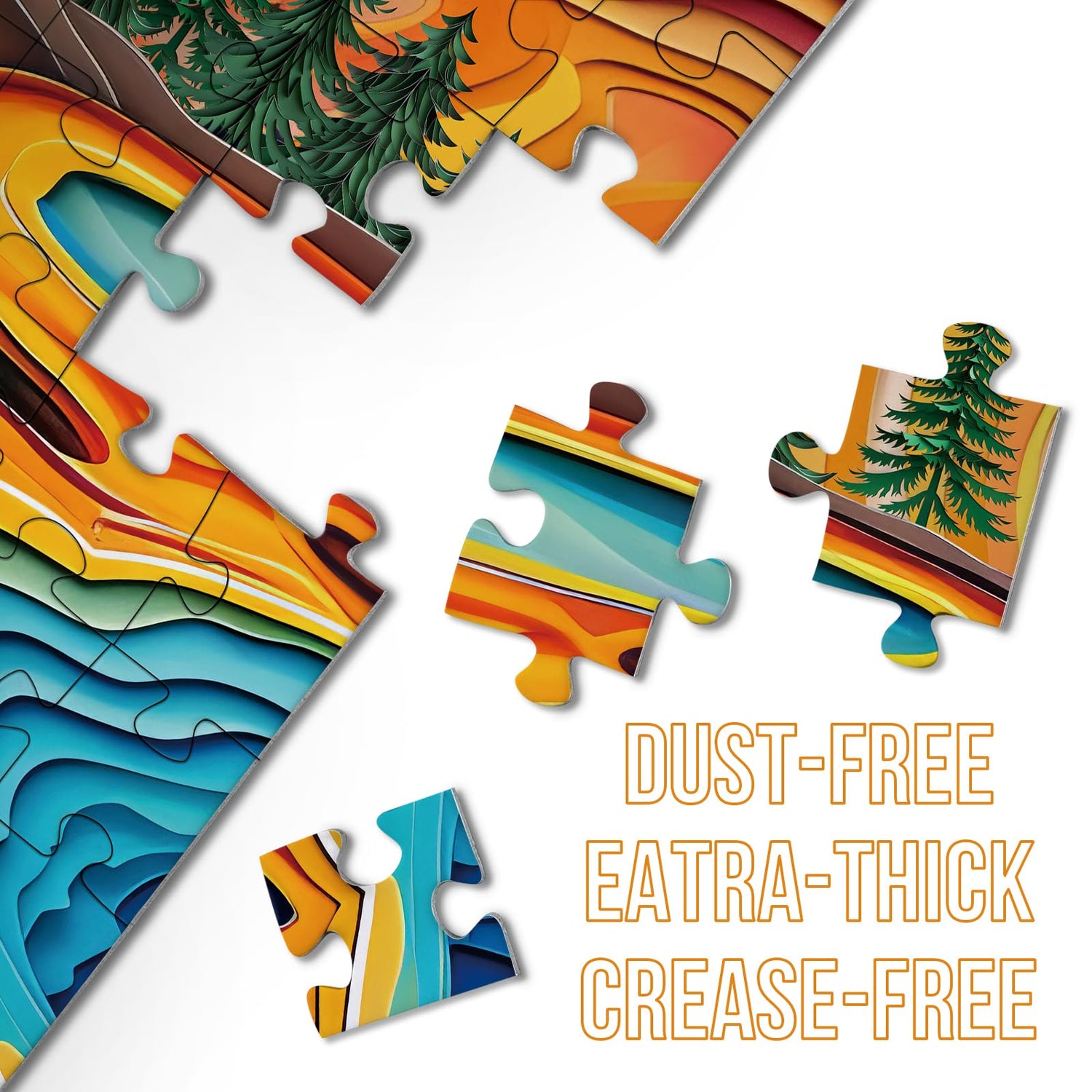 - Standard Construction - Crafted from three-layer white cardboard, our puzzles is no puzzle dust, features vivid printing, and resists fading. Each piece interlocks perfectly, keeping a Standard assembly experience