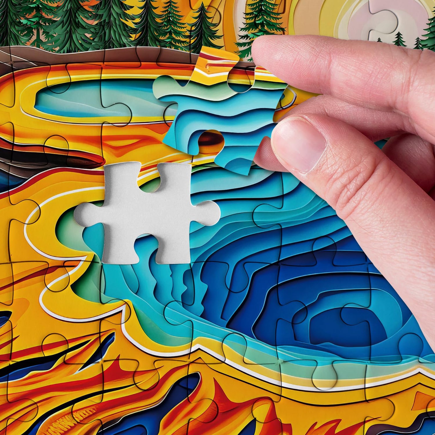 - Majestic Yellowstone Splendor - Experience the breathtaking beauty of Yellowstone's Grand Prismatic Spring with our paper-cut style puzzle. This puzzles for adults 1000 pieces captures the vibrant colors and natural wonder, making it a must-have for nature lovers and puzzle enthusiasts alike