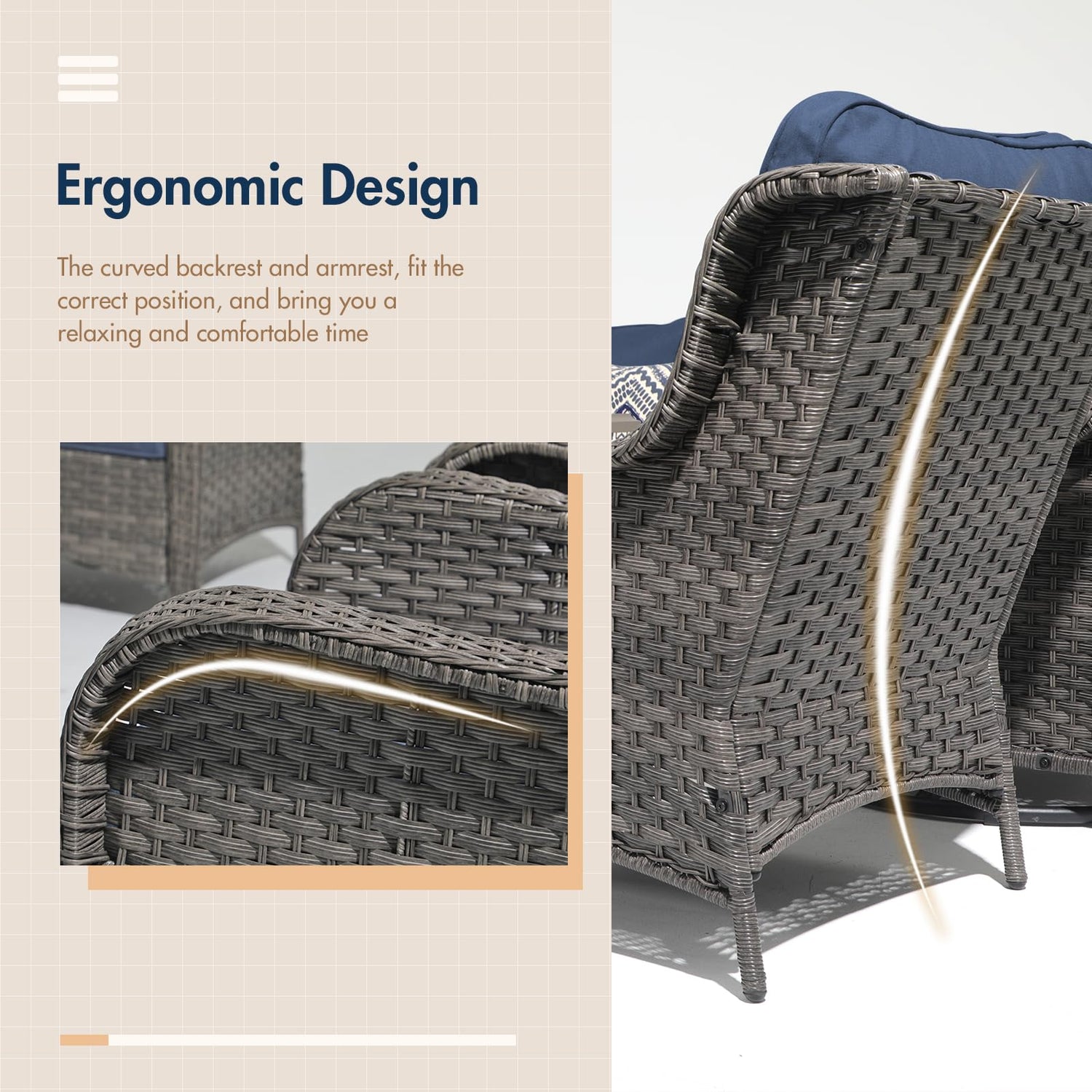 - 【Timeless Design】Designed to bring deep comfort and meticulously handcrafted for maximum longevity, the patio furniture set with fire pit is an ideal choice for patios. Meanwhile, the versatility and understated elegance make wicker patio set easily adaptable to multiple scenarios and decor styles.