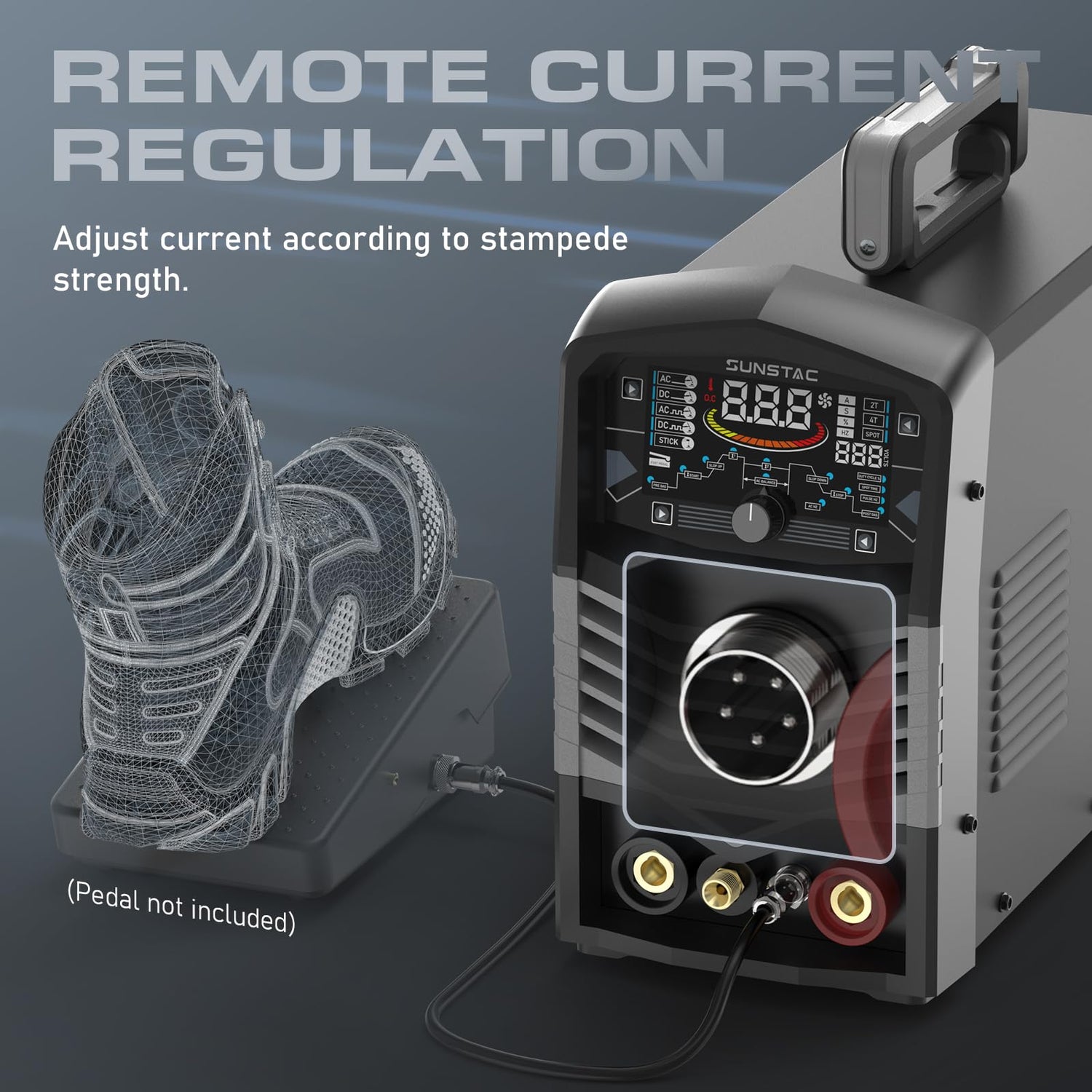 - 【LCD Digital Screen】Sunstac AC/DC TIG welder offers all-new LCD screen (surpass old LED screen), much easier to access parameters including voltage, current and other settings. The digits are clearly visible on the screen even with your helmet on that enables you great efficiency and accuracy.