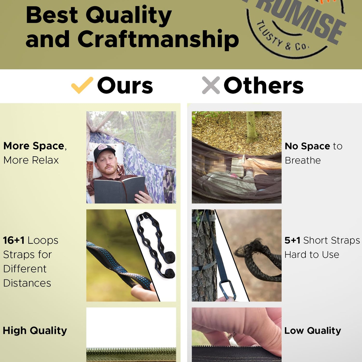 - A TRUE HAMMOCK FOR CAMPING: This is one of those camping hammocks you can actually sleep in outside. The compact & lightweight outdoor hammock comes in an elegant pouch with all its installation tools. Ideal for solo adventures, camping, hiking, backpacking, travel, emergency