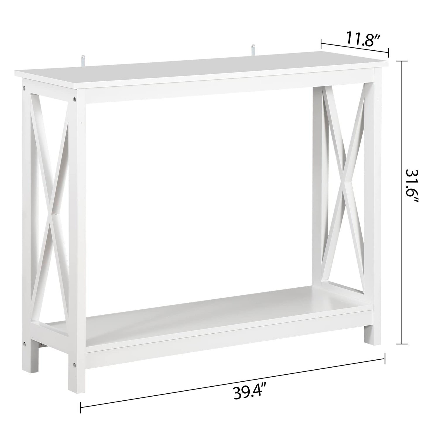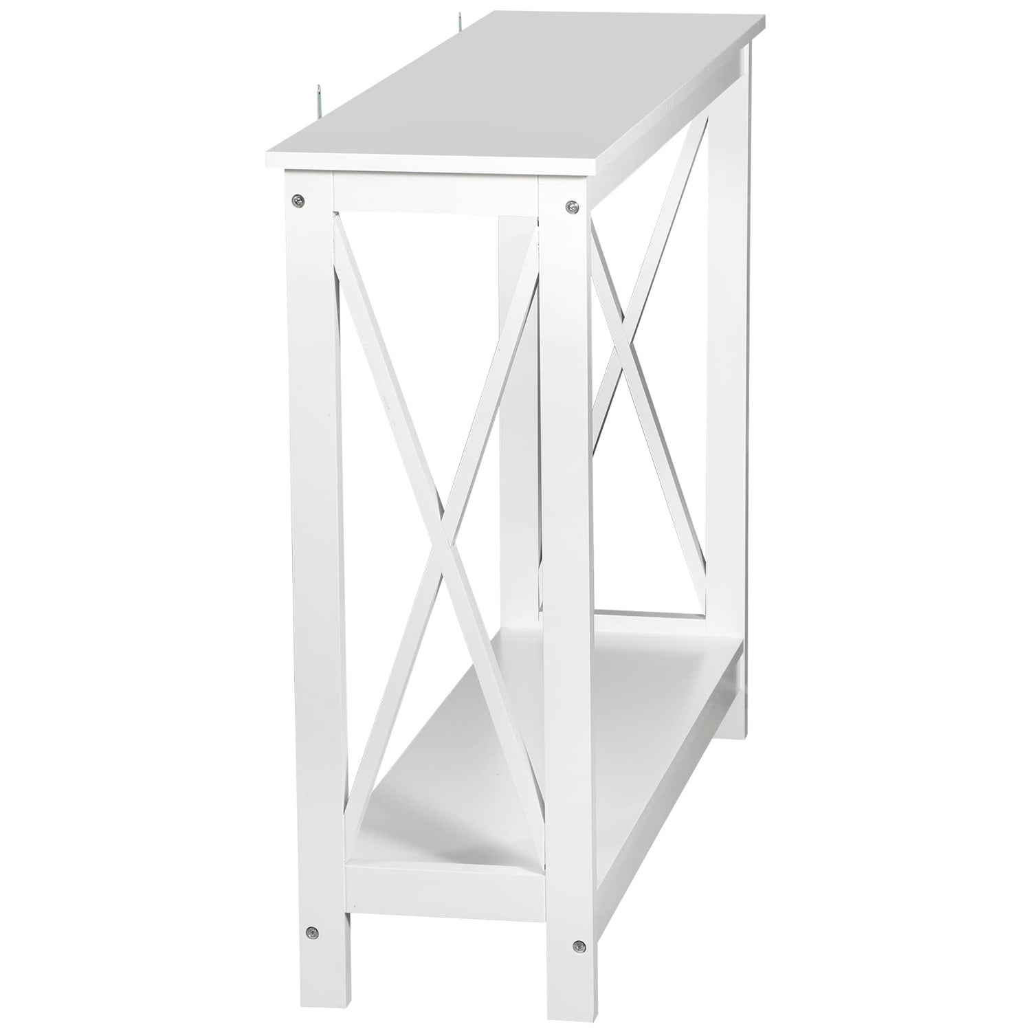 SUPER DEAL 2-Tier Narrow Console Sofa Side Table for Entryway/Hallway/Living Room, 39.3in L x 11.8in W x 31.6in H, White