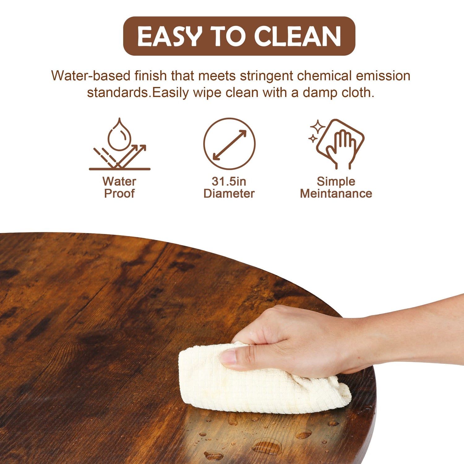 SUPER DEAL Round Coffee Tables w/ 32 Inch Rustic Wooden Surface Top and Sturdy Metal Legs Industrial Cocktail Table for Living Room, Rustic Brown