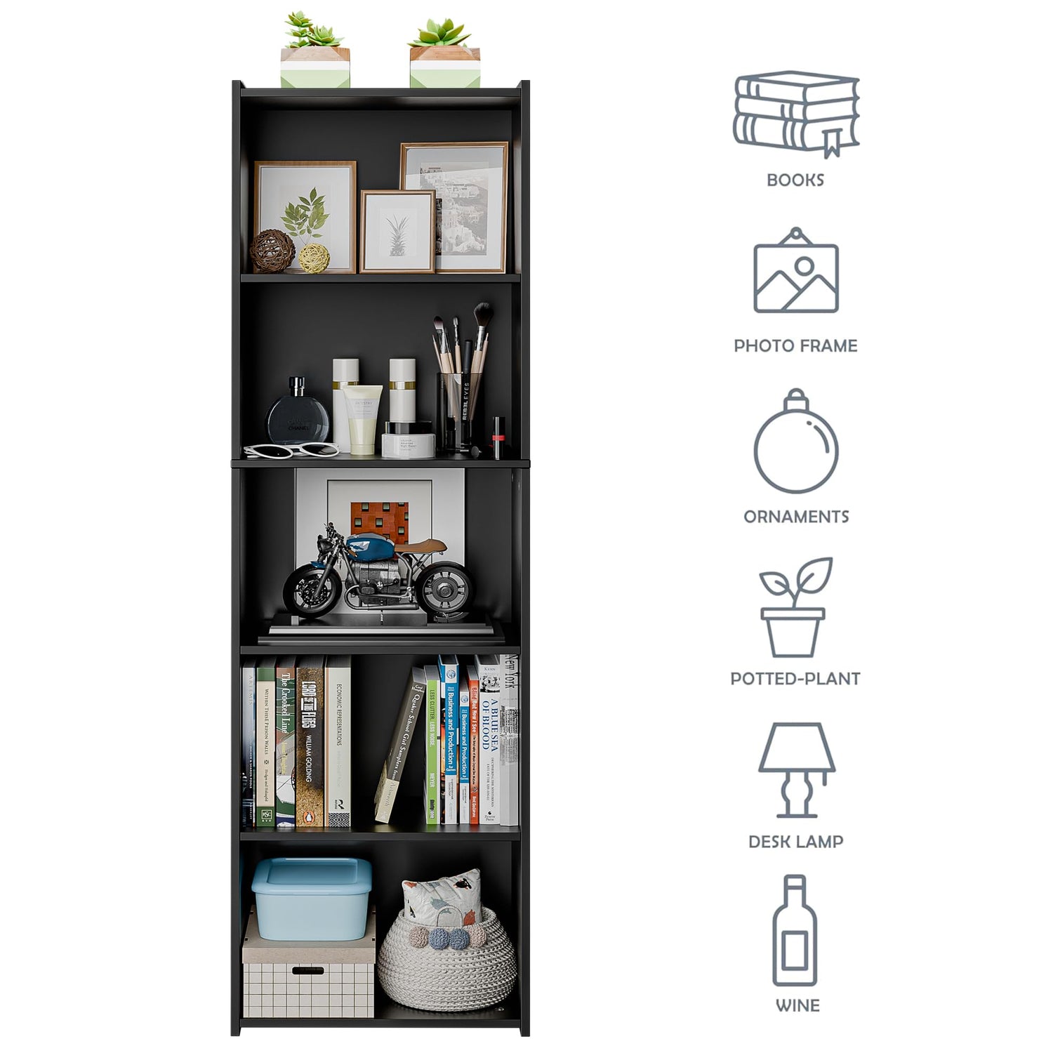SUPER DEAL Wood Bookcase 5-Tier Open Shelf Narrow Tall Cube Bookshelf for Small Spaces Freestanding Display Storage Organizer for Kids Bedroom Home Office Apartment, 52 Inch Black
