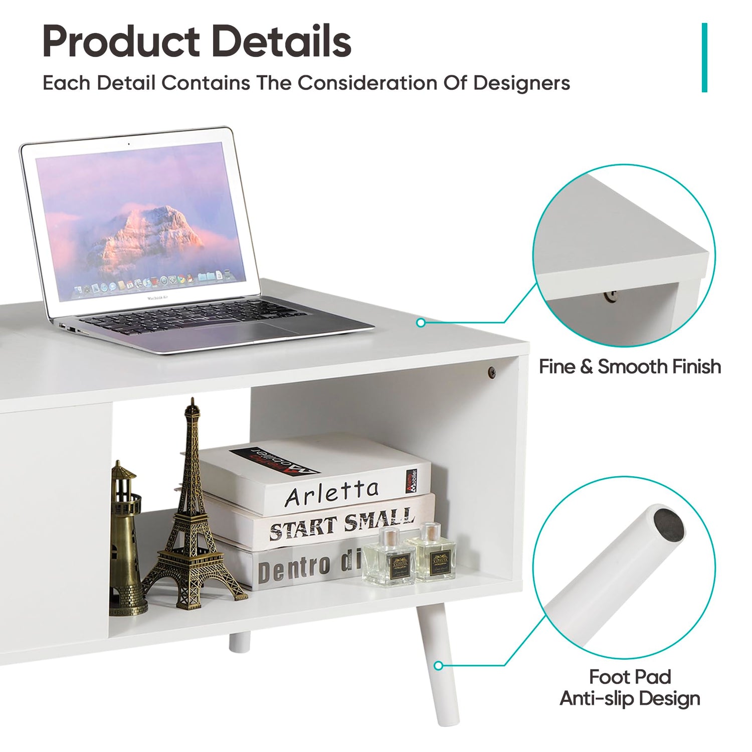 - 【Stable Coffee Table with Solid Legs】This cute mid-century appearance design is easy to coordinate with your existing decor, gives the room a classic yet modern vibe and has ample storage on the lower level. Suitable for many occasions like dining, working, playing games, even great as a foot rest or decorative piece
