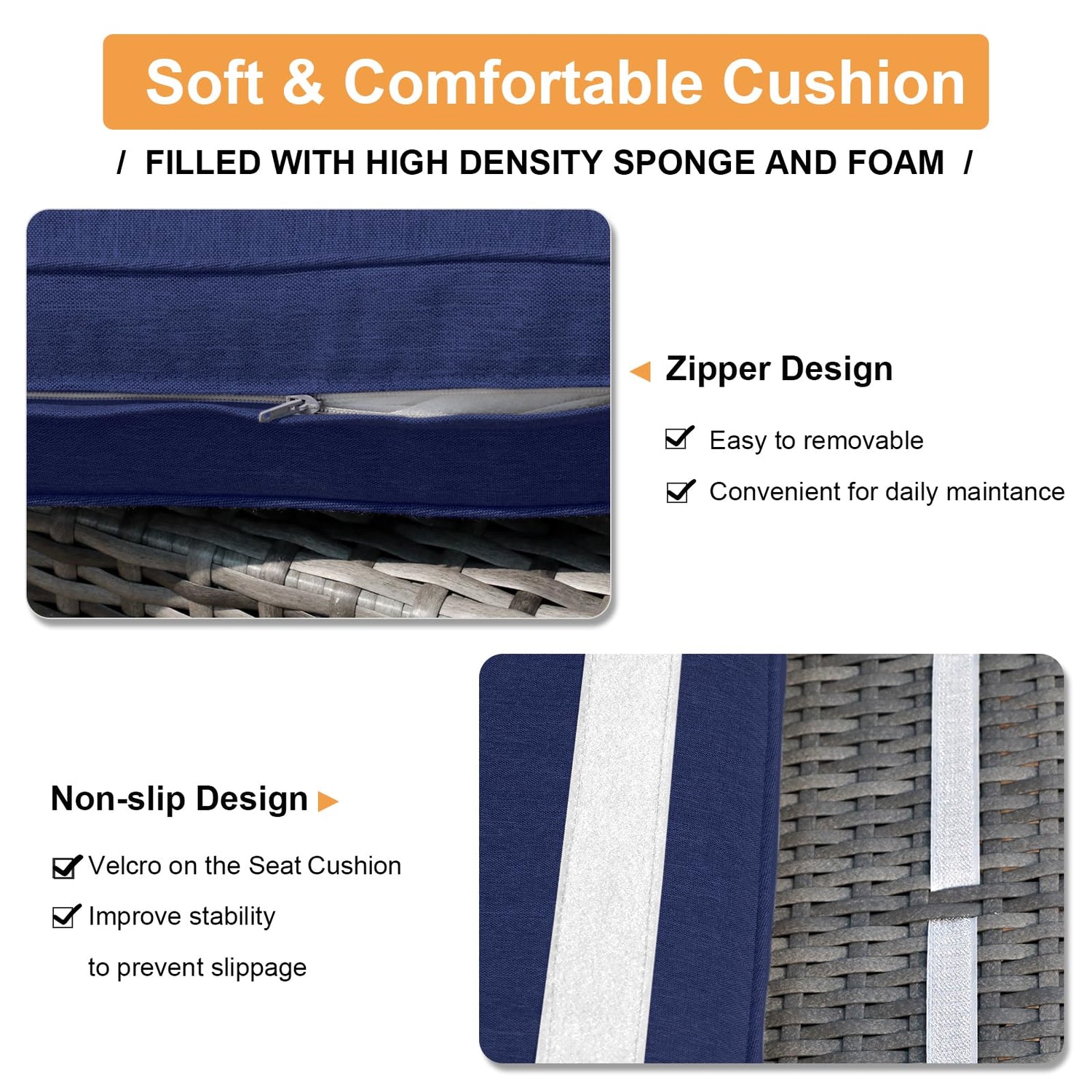 - 【Upgraded Comfort】Comes with 4-inch thick lofty sponge padded seat cushions and back cushions for more comfort and relaxation; Cushions are non water-resistant