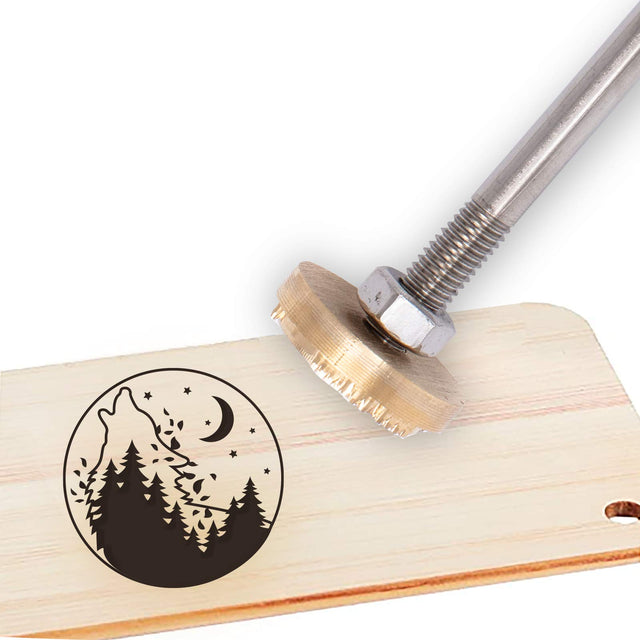 Wood Branding Iron with Snow Mountain Forest Design by SUPERFINDINGS - Moon Star Wolf & Forest