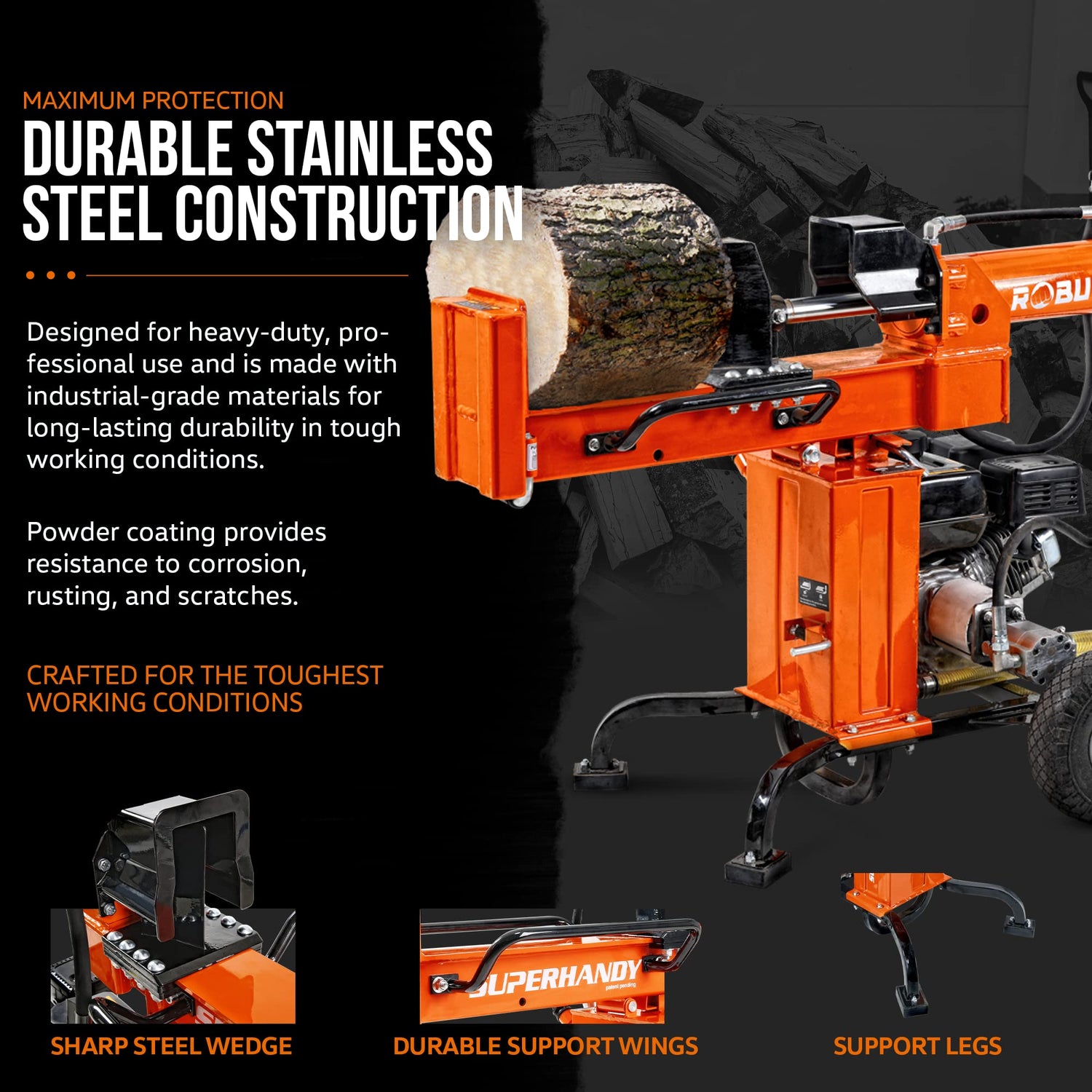 SuperHandy Portable 25 Ton Gas Log Splitter with 7HP Engine, Bucher Gear Pump, and Horizontal/Vertical Half Beam Steel Wedge for Firewood Splitting