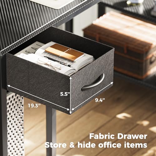 - 【Desk with Storage】The desktop and 2 storage shelves on the side allow you to store unlimited office supplies. The pc tower can be placed on the bottom shelf and there is a fabric drawer to store stationery and other privacy items. Super practical design!