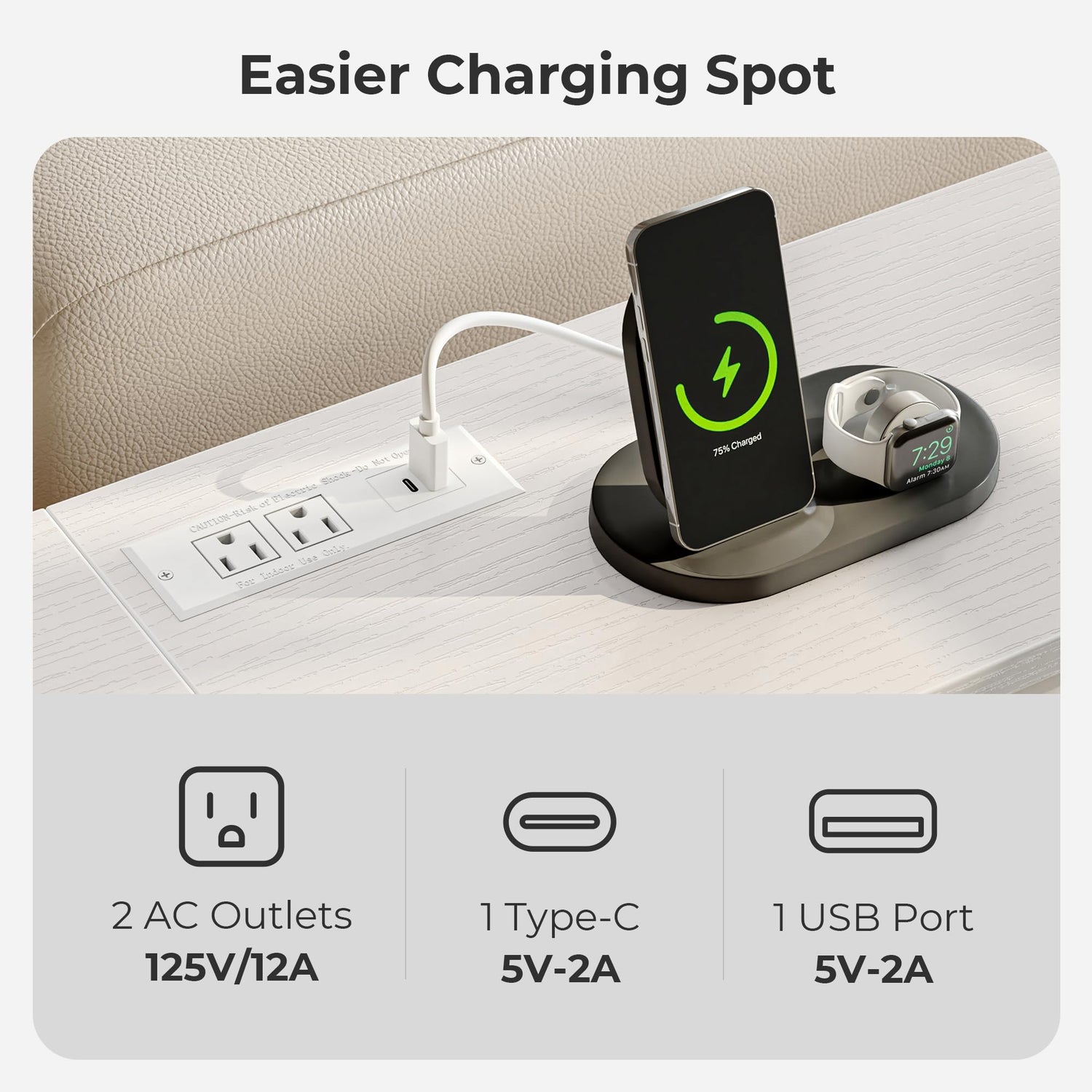 - [2 Outlets, 1 Type-C and 1 USB Port]: Look around to charge your phone? No more. Here comes this SUPERJARE charging sofa table with multiple charging ways: 2 outlets, 1 Type-C and 1 USB port. Lamps, Headset, iPad, mall fan... All settled. No low battery worries