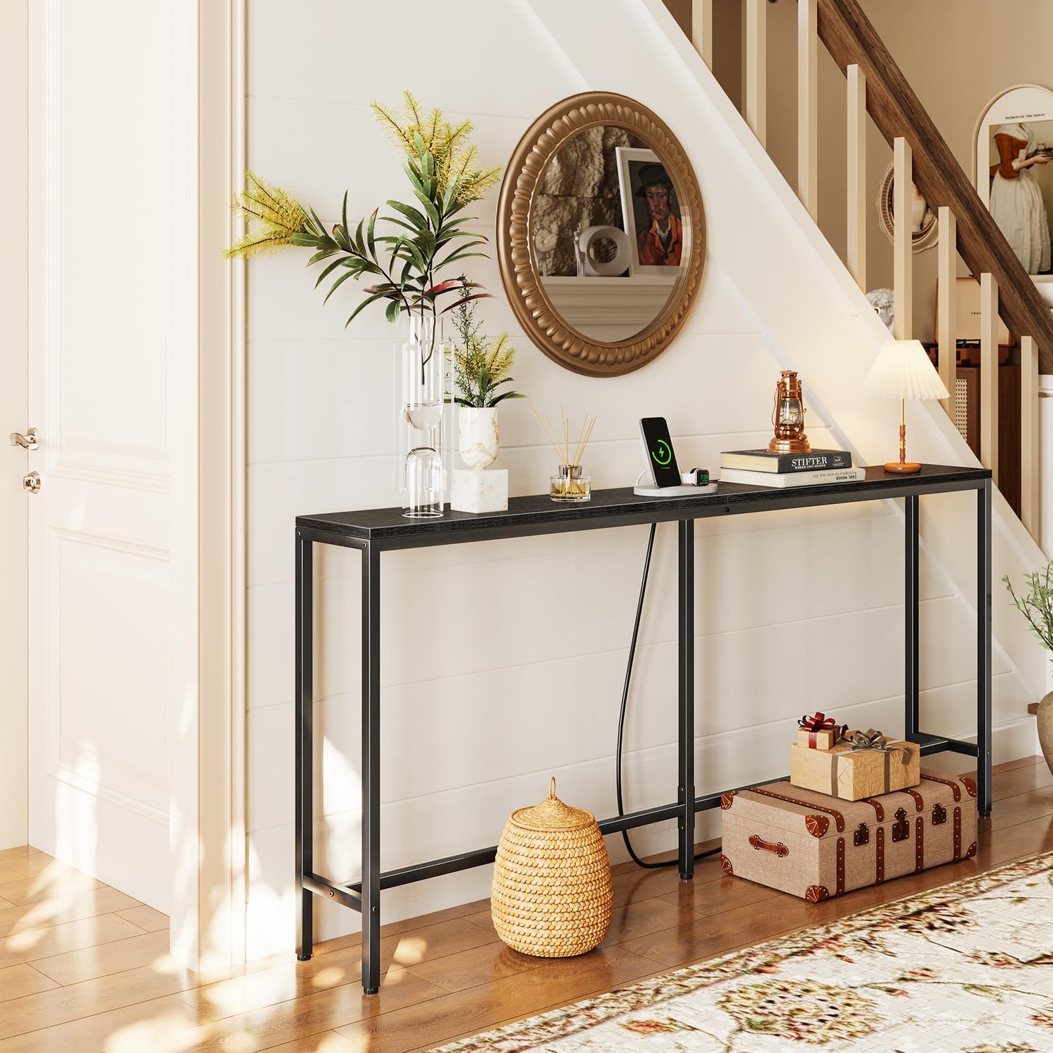 - [Welcome Power Outlets]: Invite this narrow console table to inspire your life! 2 outlets, 1 USB Port and 1 Type-C port are totally enough for your charging needs. Lamps, phones, iPad, fans, even decorative light strings are all covered