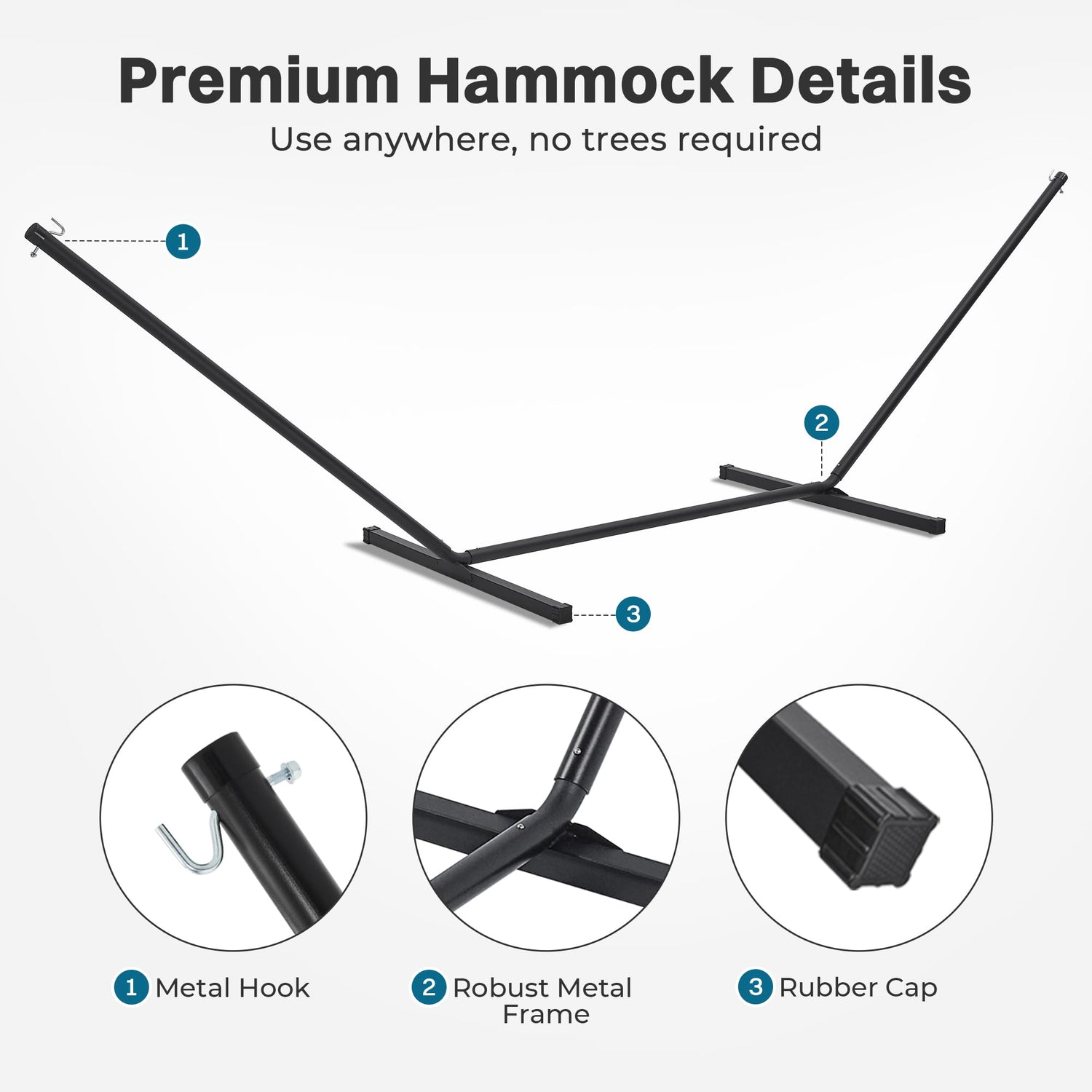 - Built to Last: Crafted with a sturdy spreader bar supported by durable ropes, our double hammock offers an impressive weight capacity of 475 lbs, ensuring both strength and reliability. Paired with a weather-resistant, anti-rust coated freestanding stand, it's ready for enduring outdoor adventures season after season