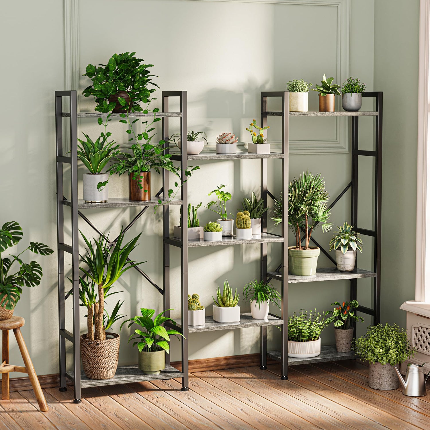 SUPERJARE Triple 4 Tier Bookshelf, Bookcase with 11 Open Display Shelves, Wide Book Shelf Book Case for Home & Office, Grey