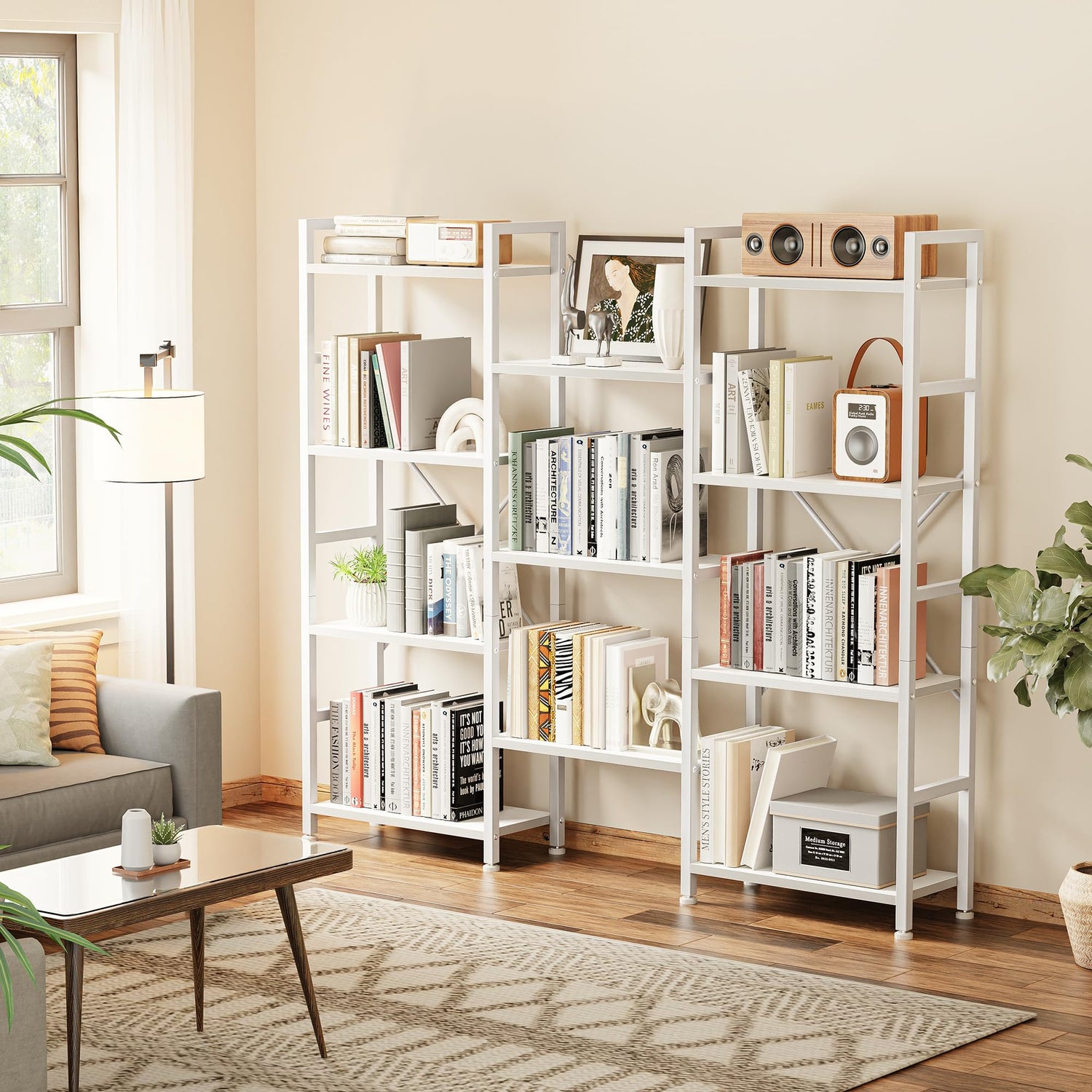 SUPERJARE Triple 4 Tier Bookshelf, Bookcase with 11 Open Display Shelves, Wide Book Shelf Book Case for Home & Office, White