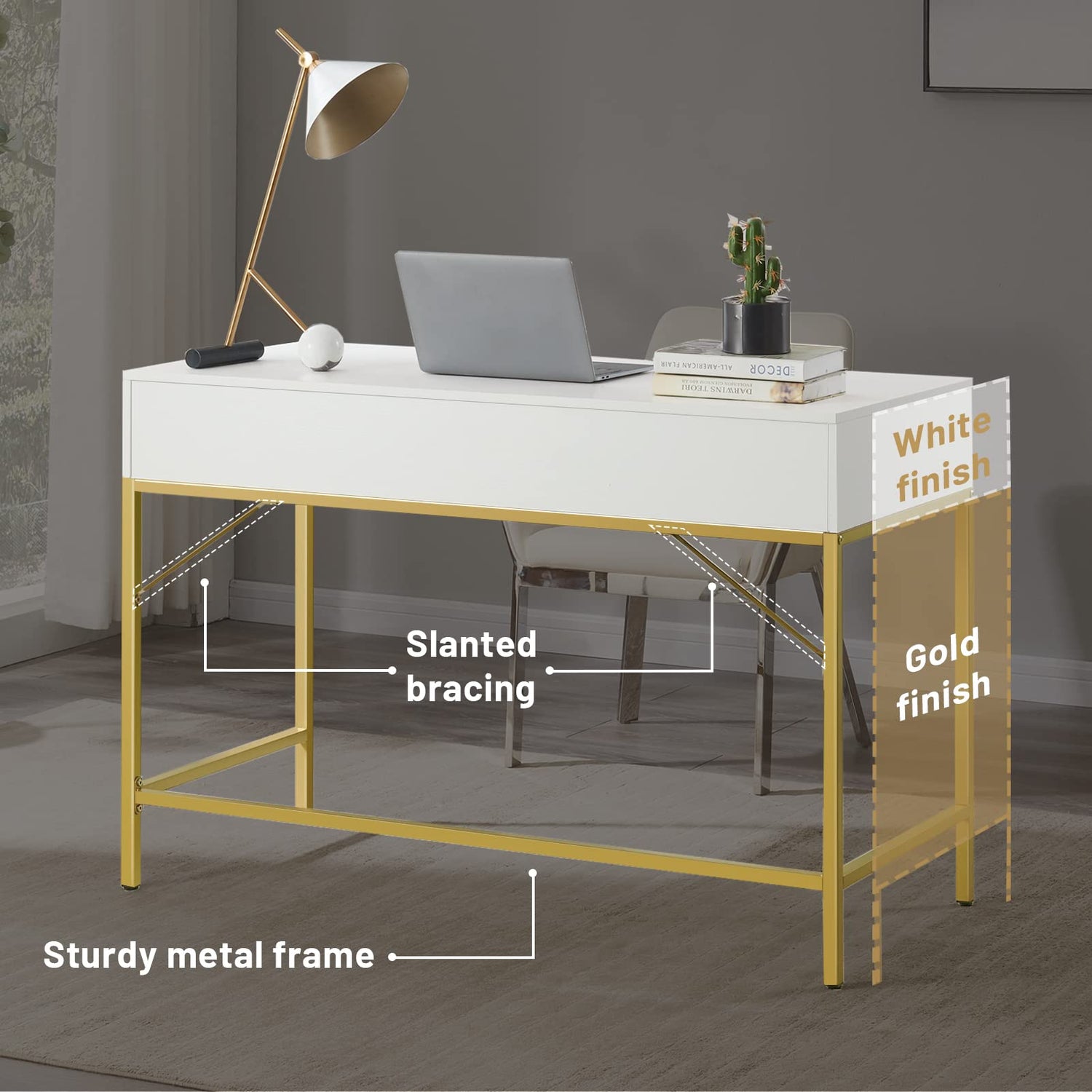 SUPERJARE Vanity Desk with Drawers, 47 inch Computer Desk, Modern Simple Home Office Desks, Makeup Dressing Table for Bedroom - White and Gold