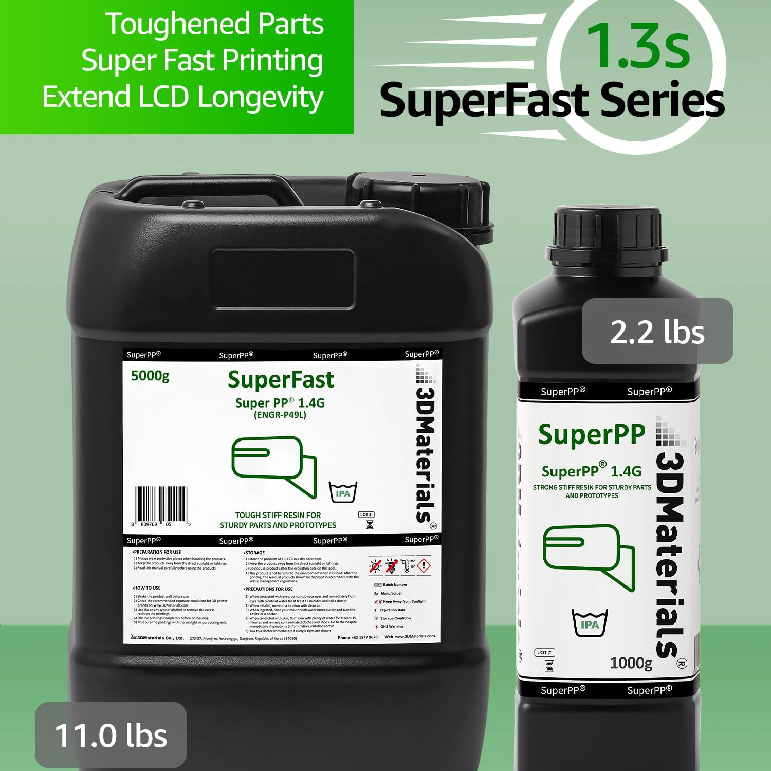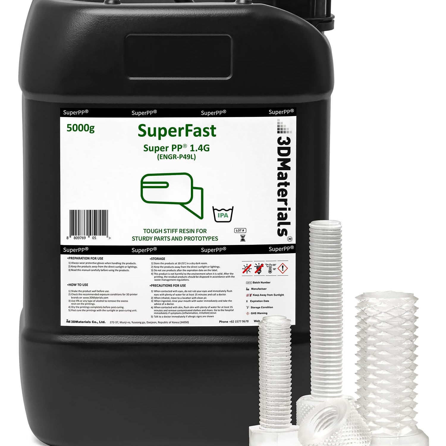 SuperPP Tough 3D Printer Resin Fastest 1.4GPa 50um Print in 1.3 secs, Made in Korea by 3DMaterials (5000g, Clear)