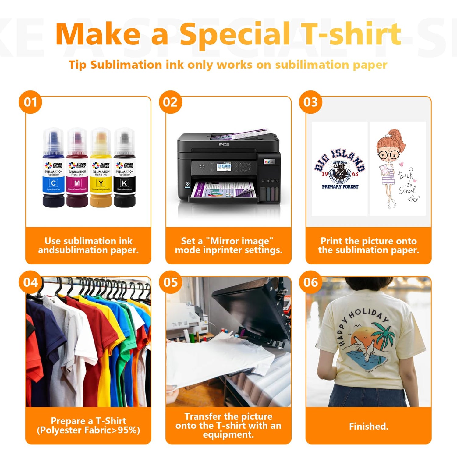 SUPERSUBINK Sublimation Ink for Epson 2800 ET2803 ET2850 ET2720 ET2760 ET4800 ET15000 Heat Press Transfer Ink (Auto-Fill Anti-UV ICC-Free)