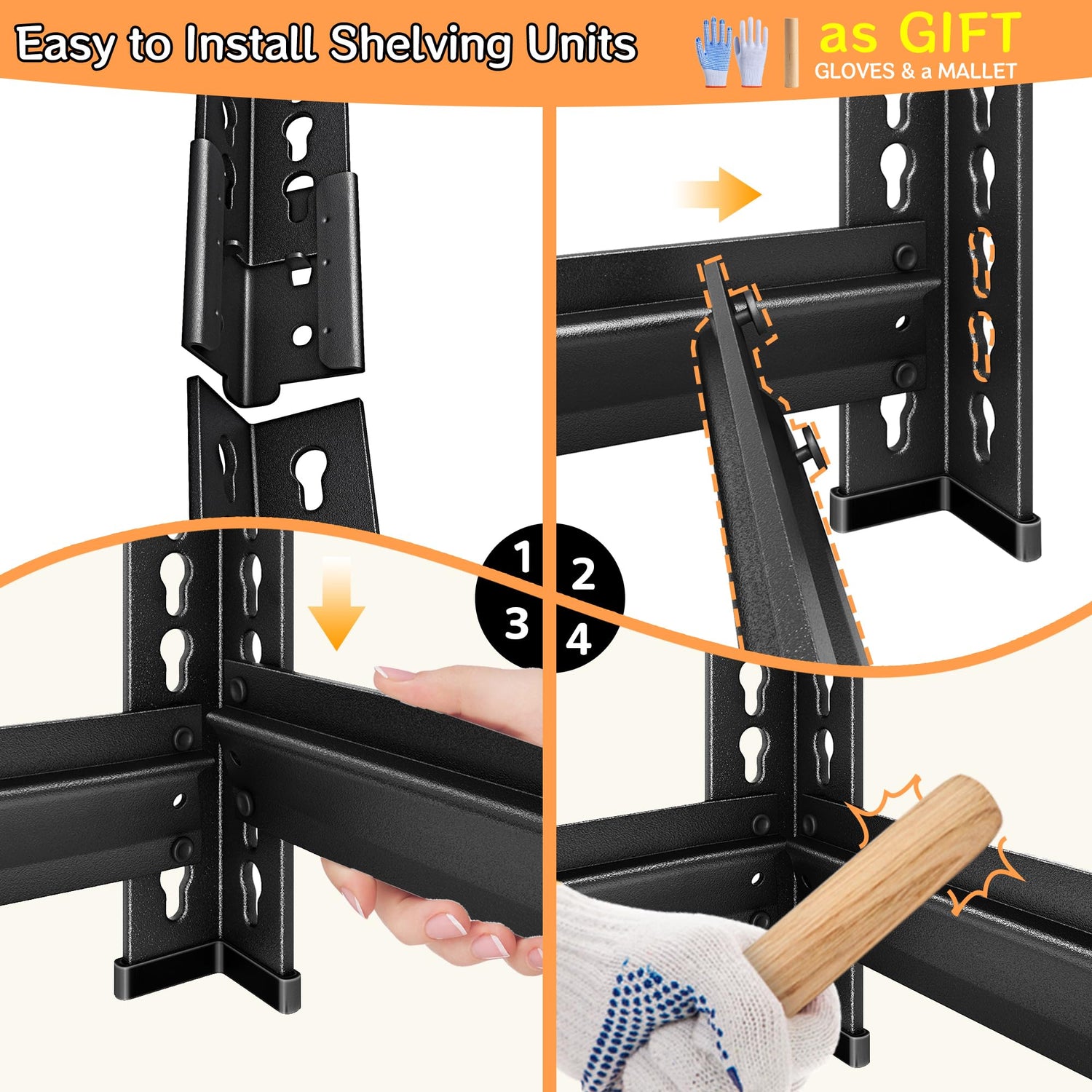 - 【Sturdy Garage Shelving】 The garage shelves are made from all metal material, the thickened steel plate makes the shelving unit more stable and durable. Special powder coating makes the metal shelving wear-resistant and rust-resistant