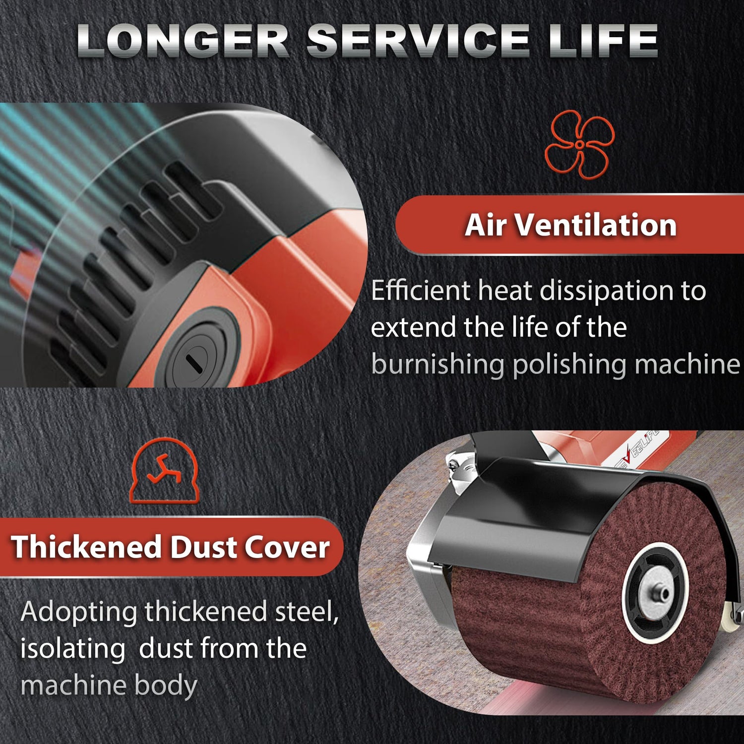 - 【Wide Application】The burnishing polishing machine can be used for stainless steel, non-ferrous steel, metal, plastic and wood grinding. The polisher is also used as floor sanders for wood floor