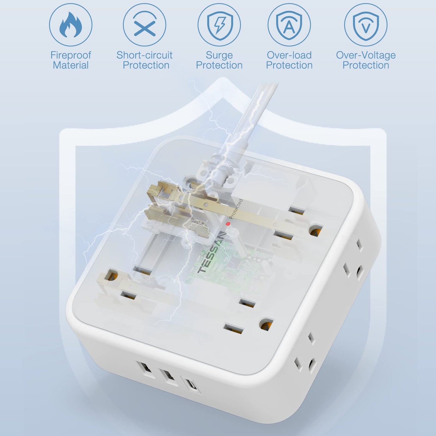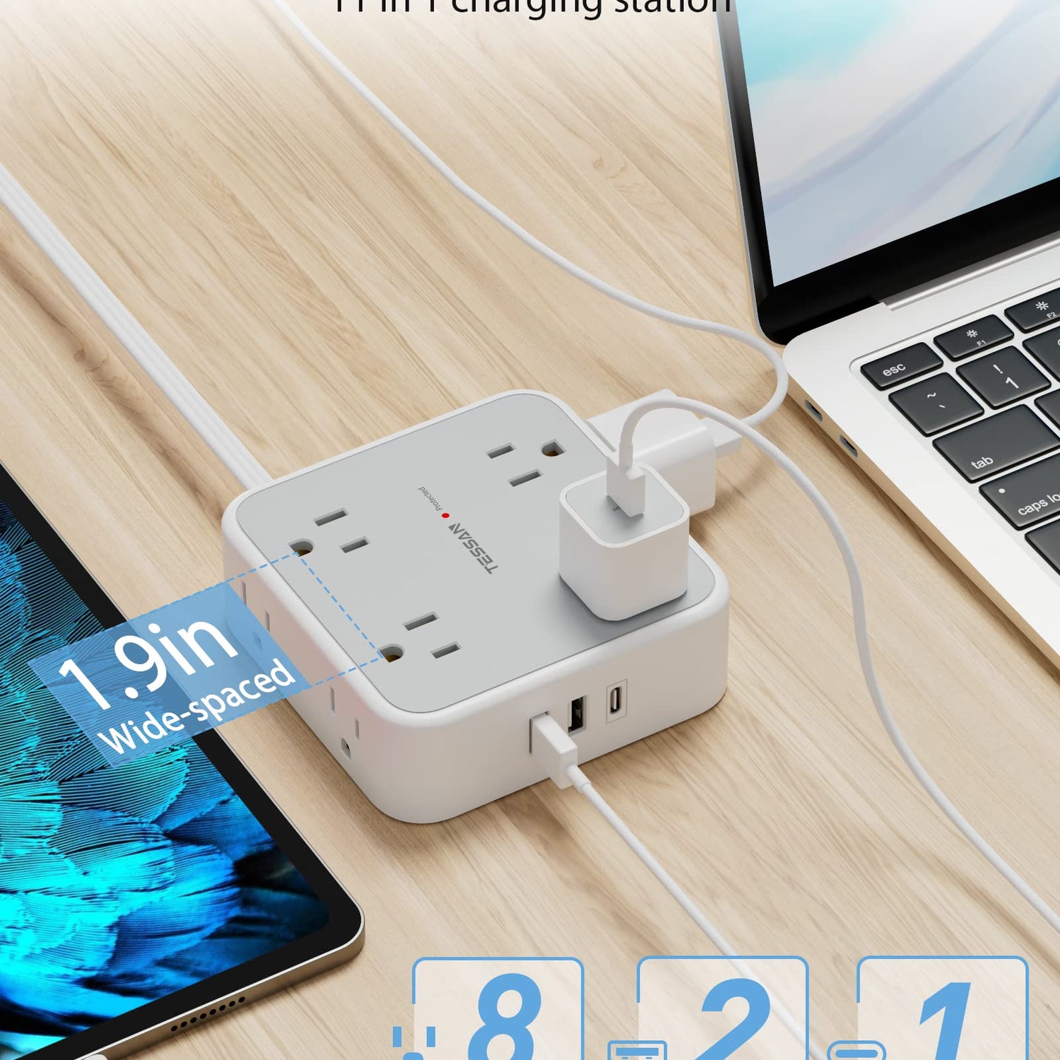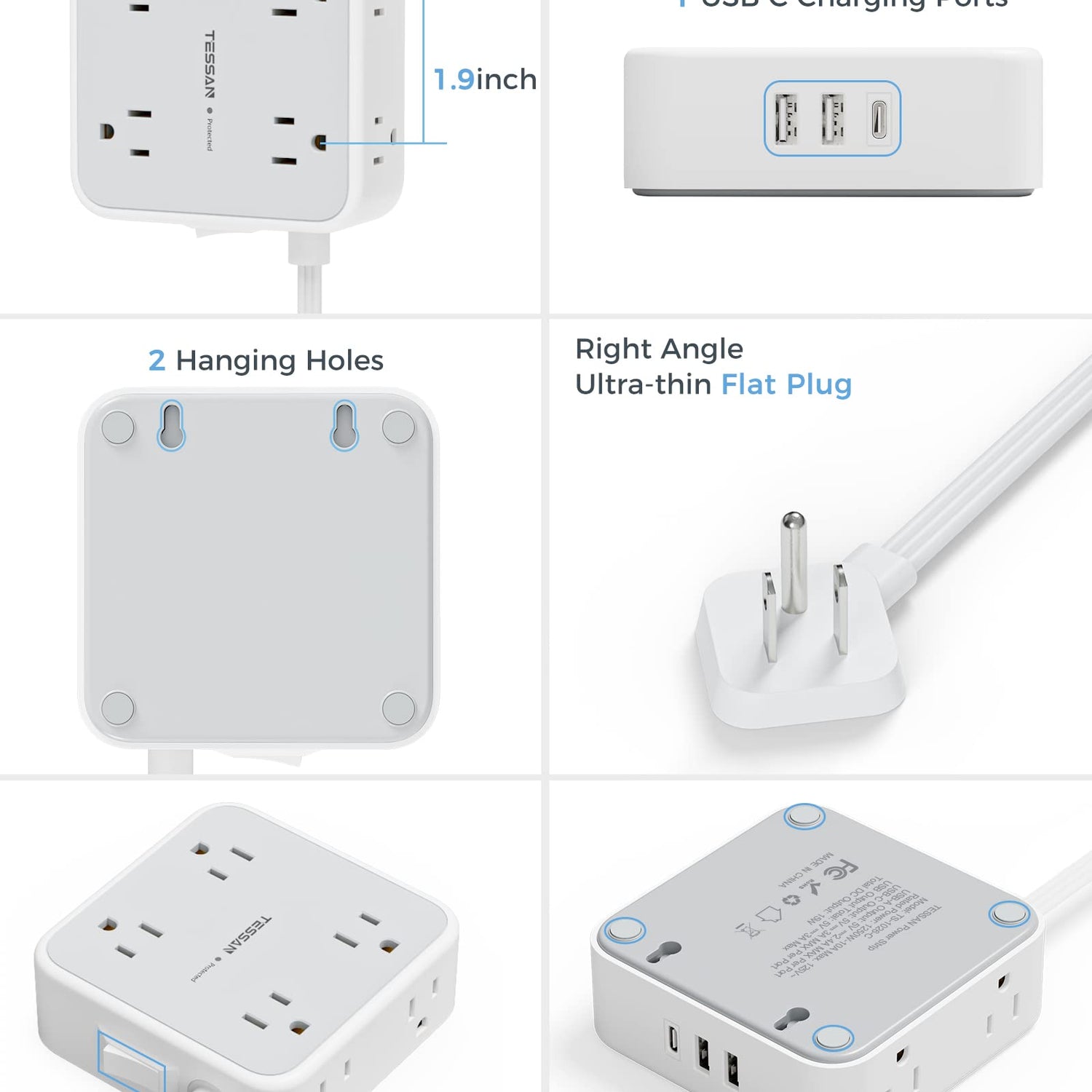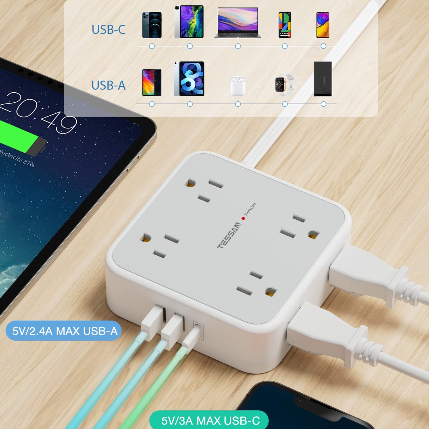 - Power Strip with USB C: Dual USB A ports features 2.4A, the USB C port features 3A; 2 types of USB ports can detect charged devices and deliver optimal charging speed, giving you more charging options; idea for USB devices like cell phone, tablet, earphone, etc