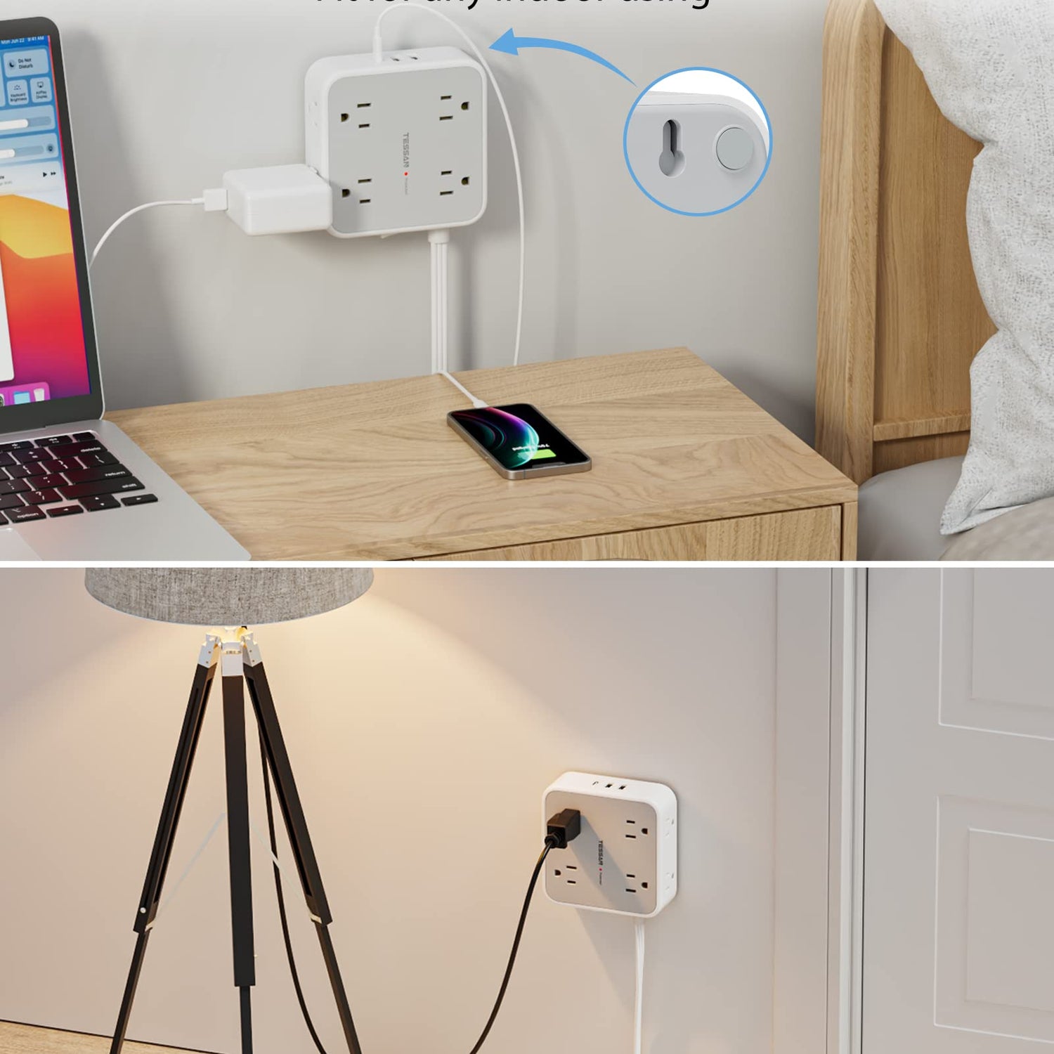 - Mountable Power Strip: 2 mounting holes design allow this white extension cord securely installed in various applications, such as workbenches, wall mounts, floor mounts, under counters and more; 4 rubber feet at the bottom efficiently keeps it from slipping and sliding